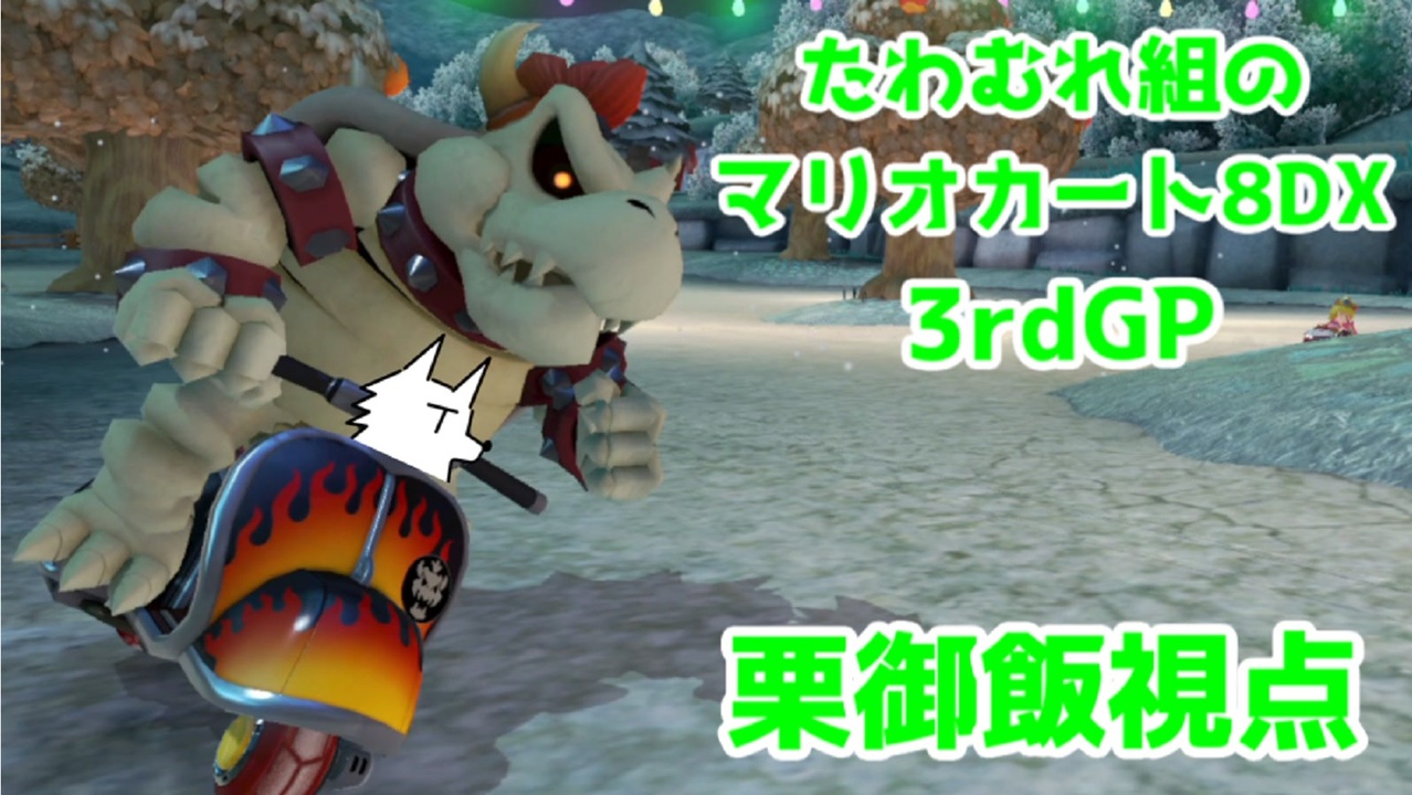 たわむれる実況でお馴染みのシンさん企画のマリカ―ト8DXコラボ!<br>コラボの第3回戦目の動画となります。<br>あの悲劇の2回戦目から二日後の戦いとなってます。<br>栗御飯は多少は成長したのか・・・?そんな所を生暖かい目で見守っていこうぜ(^゚ω゚^)<br><br>あと2ndGPでのギフトをいっぱい頂きました!ありがとうございます!<br>「名無し」さんって方がいっぱいくれてたけど<br>あれは一人の名無しさんなのか、それとも複数いる名無しさんなのか<br>その辺の仕様はどうなっているんだろう・・・!<br><br>他の参加者は以下の通りです(敬称略)<br>・シン:@huratawa<br>・むつー:@mutuu24<br>・ねねし:@ultimatenonke<br>・ロケット団員No1041:@sndteamrocket<br>・とらねずの人:@willow8713<br>・スナザメ:@sunazame<br><br>他の参加者様の視点動画もアップされています。<br>「たわむれ組」にて検索してください。<br><br>栗御飯の森<br>・ニコニコ:<a href="http://ch.nicovideo.jp/kurigohangar" target="_blank" rel="noopener nofollow">http://ch.nicovideo.jp/kurigohangar</a><br>・YouTube:<a href="https://www.youtube.com/channel/UCq8vL9OwIjXGbKsvSeJFwuw" target="_blank" rel="noopener nofollow">https://www.youtube.com/channel/UCq8vL9OwIjXGbKsvSeJFwuw</a><br><br>Twitterアカウント:@kurigohangar<br>マリオカート8DX:<a href="https://www.nicovideo.jp/series/292828" target="_blank" rel="noopener">series/292828</a><br>栗御飯の実況:<a href="https://www.nicovideo.jp/mylist/35346348" target="_blank" rel="noopener">mylist/35346348</a><br><br>使用メッセージウィンドウ素材元:びたちー素材館→<a href="http://www.vita-chi.net/sozai1.htm" target="_blank" rel="noopener nofollow">http://www.vita-chi.net/sozai1.htm</a>