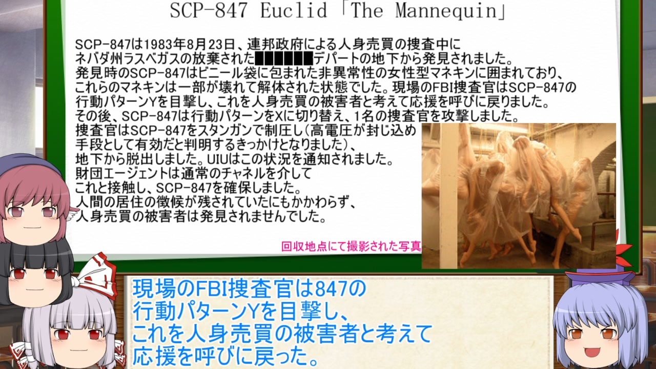 いろいろあって2本投稿です。むかし作った動画たちをサルベージしてます<br><br>SCP-552-JP <a href="http://scp-jp.wikidot.com/scp-552-jp" target="_blank" rel="noopener nofollow">http://scp-jp.wikidot.com/scp-552-jp</a> 著 tobaccololita 様<br>SCP-847 <a href="http://scp-jp.wikidot.com/scp-847" target="_blank" rel="noopener nofollow">http://scp-jp.wikidot.com/scp-847</a> 著 jarvis-bot様 訳 m0ch12uk1様<br><br><a href="https://www.nicovideo.jp/watch/sm39551212" class="watch">sm39551212</a>←<a href="https://www.nicovideo.jp/mylist/63911939" target="_blank" rel="noopener">mylist/63911939</a>→<a href="https://www.nicovideo.jp/watch/sm39962076" class="watch">sm39962076</a><br><br>著者様、翻訳者様、視聴者様、使用コモンズ様、ありがとうございます。<br>再生、コメント、マイリス、重ねて感謝申し上げます。