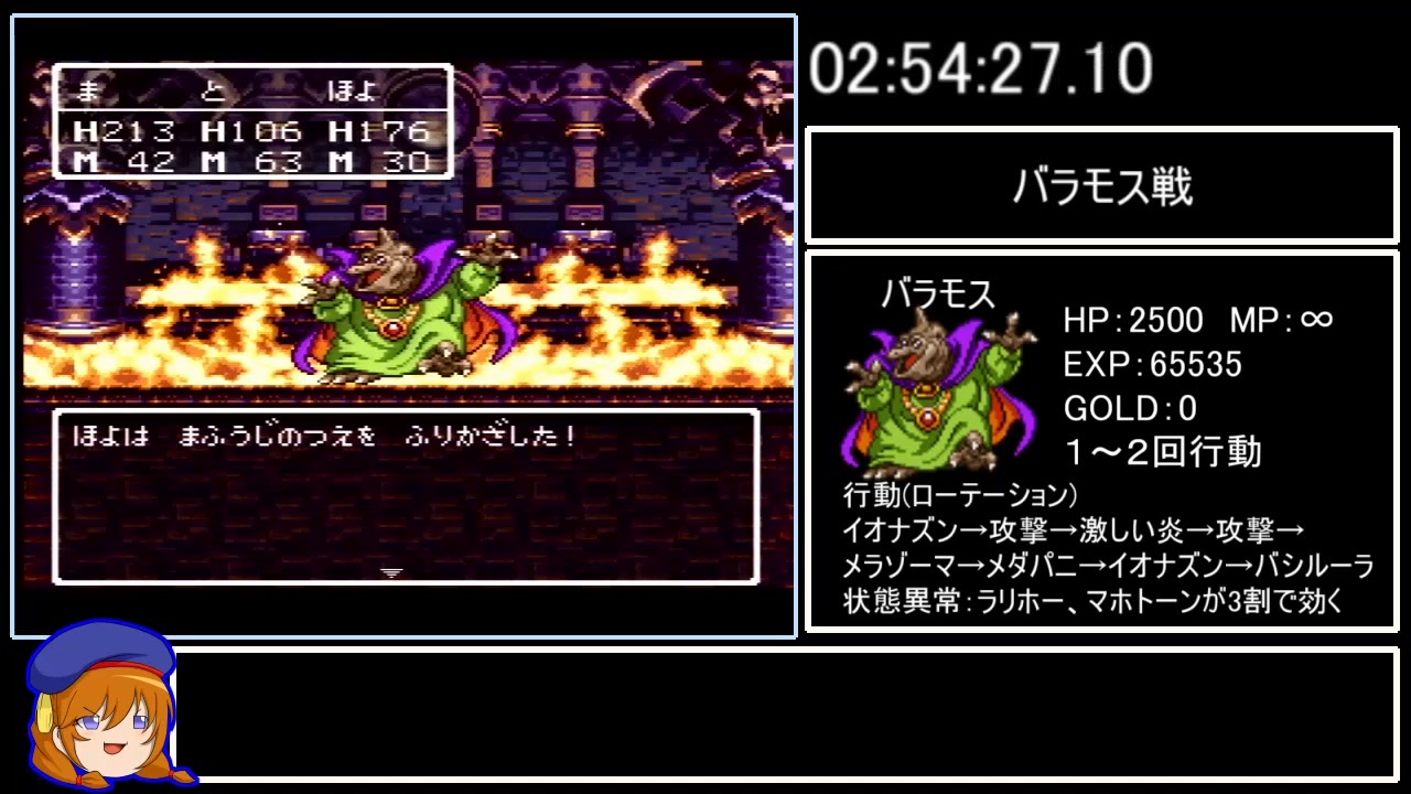 ネタばれあり。<br><br>SFC版ドラゴンクエスト3の縛りRTAです。<br>ルールは以下の通り。<br><br>ルール<br>1. アイテム増殖バグの使用禁止<br>2. パーティーの人数は3人まで<br>3. タイム計測区間は電源投入からTO BE CONTINUED TO DRAGON QUESTⅠ・Ⅱ表示 まで<br><br>インターレース解除がうまくいかず少し見づらいですが許してください。<br><br><a href="https://www.nicovideo.jp/watch/sm39903909" class="watch">sm39903909</a>←Part4|Part6→<a href="https://www.nicovideo.jp/watch/sm40033598" class="watch">sm40033598</a><br>Part1→<a href="https://www.nicovideo.jp/watch/sm39738355" class="watch">sm39738355</a><br><br>youtube版→<a href="https://youtube.com/playlist?list=PLEWji-wnXssg_0xW-_JkNgM0dGGVuZ9Mk" target="_blank" rel="noopener nofollow">https://youtube.com/playlist?list=PLEWji-wnXssg_0xW-_JkNgM0dGGVuZ9Mk</a><br><br>全然つぶやかないツイッター<br><a href="https://twitter.com/Hakusai_kkmsn" target="_blank" rel="noopener nofollow">https://twitter.com/Hakusai_kkmsn</a><br><br>この動画で利用している株式会社スクウェア・エニックスを代表とする共同著作者が権利を所有する著作物及びスギヤマ工房有限会社が権利を所有する楽曲の転載・配布は禁止いたします。<br>© 1995 ARMOR PROJECT/BIRD STUDIO/HEART BEAT/SQUARE ENIX All Rights Reserved.<br>© SUGIYAMA KOBO