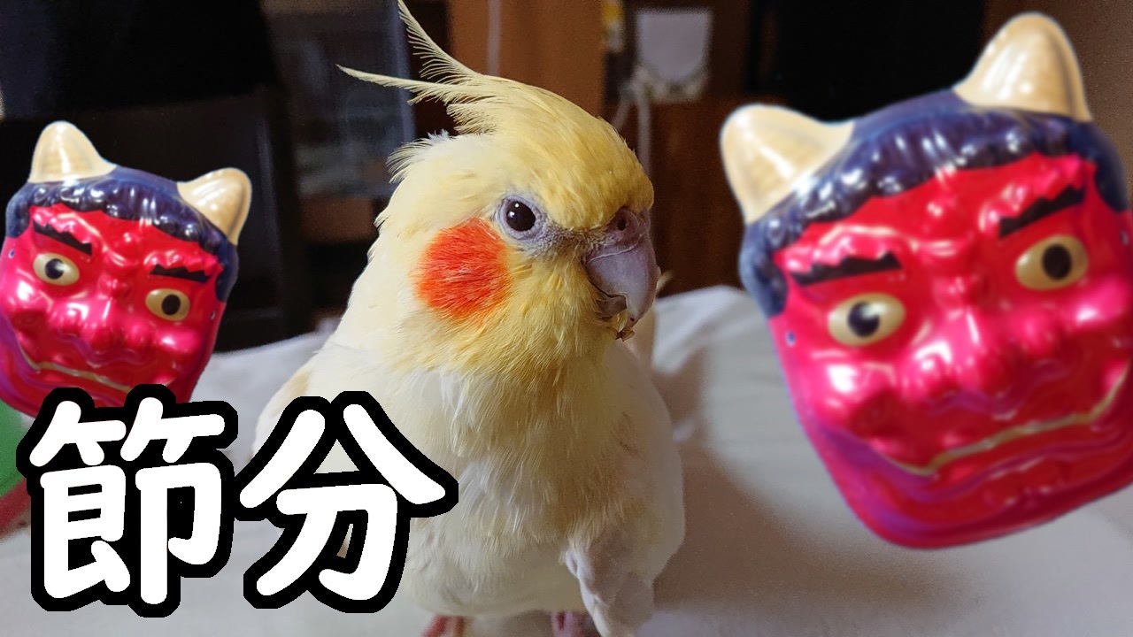2022年2月3日。いいちこインコさん25回目の節分です!<br>昔から節分の豆が大好きなのですが、流石に、この年齢になると固くて食べられないみたい……でも、そんな時は、茹でた柔らかい大豆で!<br><br>大豆はアミノ酸スコア100の食品で、インコの食事に不足しがちなリジンを多く含み、特に換羽の時に与えると体調を整えます。<br>ただ、カロリーは低いのですが、意外と大豆は脂質が高いので、大豆を与える時は、ヒマワリの種などは控えた方が良さそうです。<br /><br>【ご報告】<br>オカメインコの「いいちこインコさん」は、2023年3月15日に私の手の平の上で亡くなりました。<br>26歳9ヶ月の命でした。旅立った事の詳細報告動画→ <a href="https://www.nicovideo.jp/watch/sm41971021" class="watch">sm41971021</a><br><br>保護ボタンインコの「チュン太さん」も、2024年8月5日に私の手の平の上で亡くなりました。<br>保護して11年と7ヵ月でした。旅立った事の詳細報告動画→ <a href="https://www.nicovideo.jp/watch/sm43951649" class="watch">sm43951649</a><br><br>2025年9月14日から愛知県の鳥保護施設からセキセイインコのチビ太をお迎えいています。<br><br>●いいちこインコ飼育漫画はコチラ→<a href="https://seiga.nicovideo.jp/comic/8860" target="_blank" rel="noopener">comic/8860</a> <br>●<a href="https://www.nicovideo.jp/mylist/7966031" target="_blank" rel="noopener">mylist/7966031</a> <br>●ツイッター @iichiko_hana<br>●pixivFANBOXのブログ→ <a href="https://iichiko-hana.fanbox.cc/" target="_blank" rel="noopener nofollow">https://iichiko-hana.fanbox.cc/</a>