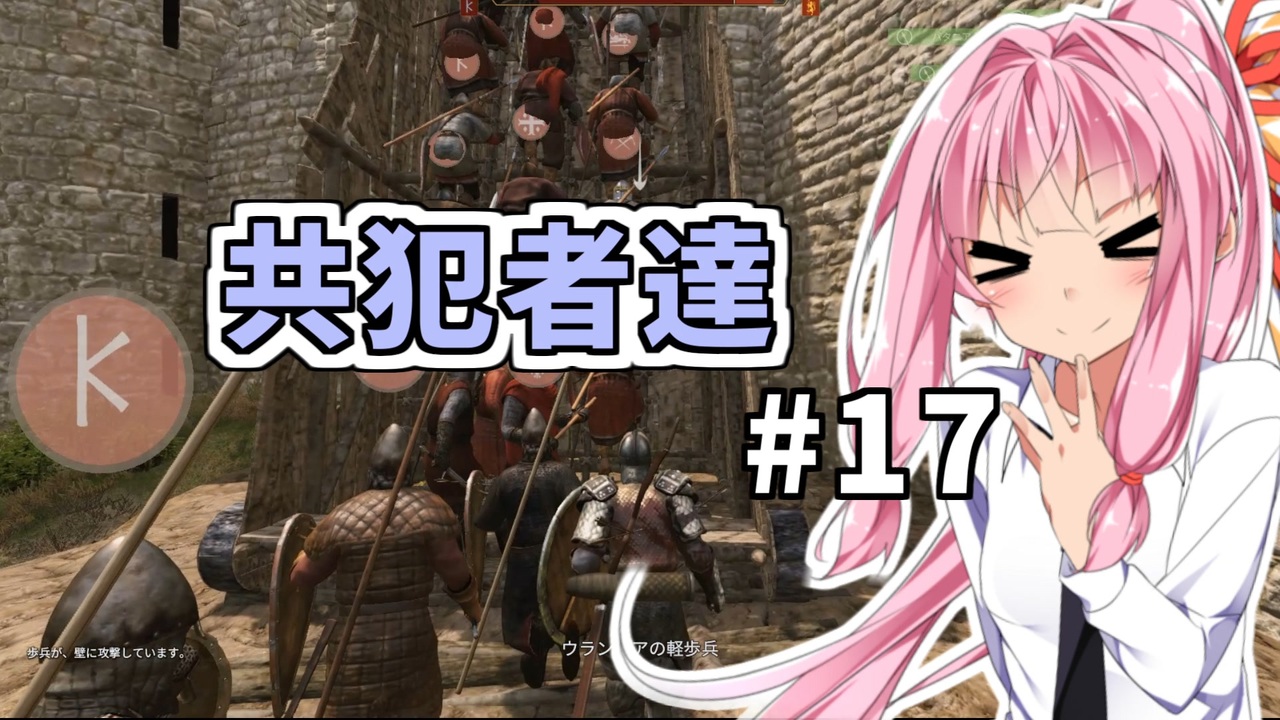 「英語ではかっこ良くてもカタカナにするとやっぱり致命的にダサいよ姉者・・・」<br>「この痛々しさは万能薬のずんだでも治す事は不可能ですね」<br>「そういう所に限って何でお前らカットしないんだコラー!」<br><br>今回から1.7.0でのプレイになります!<br><br>マウブレ2(Mount&Blade2:bannerlord)をサンドボックスモードで解説しながらプレイします。<br>アーリーアクセスゲームなので今後のアップデート次第では攻略情報がすぐに使えなくなる可能性があります。<br>果たして姉妹は正式版までに諸外国と渡り合える強国を築き上げる事が出来るのか?琴葉姉妹の冒険は続く!<br>※特に効率プレイではないので寄り道する事が多々あるよ!<br><br>縛り内容:鍛冶、処刑の禁止<br>使用mod:日本語化のみ<br><br>この動画のマイリス → <a href="https://www.nicovideo.jp/mylist/71843501" target="_blank" rel="noopener">mylist/71843501</a><br>part1へ → <a href="https://www.nicovideo.jp/watch/sm39362832" class="watch">sm39362832</a><br><br><a href="https://www.nicovideo.jp/watch/sm39922613" class="watch">sm39922613</a> ← 前 #16|| <a href="https://www.nicovideo.jp/watch/sm40031024" class="watch">sm40031024</a> #18 次