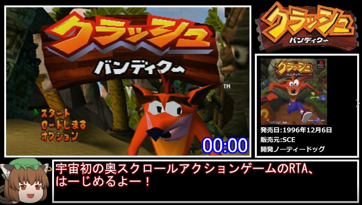 投稿までに6年かかったので、実質初投稿です。<br><br>タイマースタート:スタート押下時<br>タイマーストップ:コルテックス撃破時<br>使用機種:PS2 SCPH-90000SS(高速読み込みあり)<br><br>クラッシュ2RTA(バグなし):<a href="https://www.nicovideo.jp/watch/sm28559864" class="watch">sm28559864</a><br>クラッシュ2RTA(バグあり):<a href="https://www.nicovideo.jp/watch/sm40261945" class="watch">sm40261945</a><br>クラッシュ3RTA(バグなし):<a href="https://www.nicovideo.jp/watch/sm28135203" class="watch">sm28135203</a><br>クラッシュ3RTA(バグあり):<a href="https://www.nicovideo.jp/watch/sm40402052" class="watch">sm40402052</a><br>RTAまとめ:<a href="https://www.nicovideo.jp/mylist/56827667" target="_blank" rel="noopener">mylist/56827667</a><br>更新報告:<a href="https://twitter.com/yamabukiginu" target="_blank" rel="noopener nofollow">https://twitter.com/yamabukiginu</a>