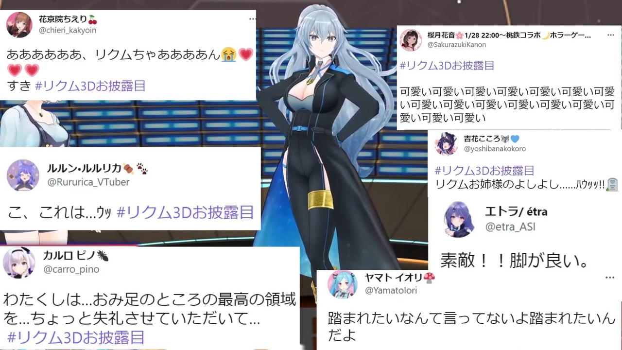 リクム姐さんの3Dほんと素晴らしいですね!<br>.LIVEメンバーの3Dお披露目をリアタイで見たのは初めてだったのでドキドキしました(*´▽`*)<br>ルルちゃんとみりりちゃんも楽しみです!<br><br>YouTube版<br><a href="https://www.youtube.com/watch?v=JeMvZL6qnlY&t=428s" target="_blank" rel="noopener nofollow">https://www.youtube.com/watch?v=JeMvZL6qnlY&t=428s</a><br><br>元動画<br><a href="https://www.youtube.com/watch?v=UvR1kigbER4&t=784s" target="_blank" rel="noopener nofollow">https://www.youtube.com/watch?v=UvR1kigbER4&t=784s</a><br><br>結月シンのYouTubeチャンネル<br><a href="https://www.youtube.com/channel/UCEeM1NWRQEYmdZyPzxVpOGw" target="_blank" rel="noopener nofollow">https://www.youtube.com/channel/UCEeM1NWRQEYmdZyPzxVpOGw</a><br><br>Twitterやってます <a href="https://twitter.com/@yudukisin" target="_blank" rel="noopener nofollow">https://twitter.com/@yudukisin</a><br><br>