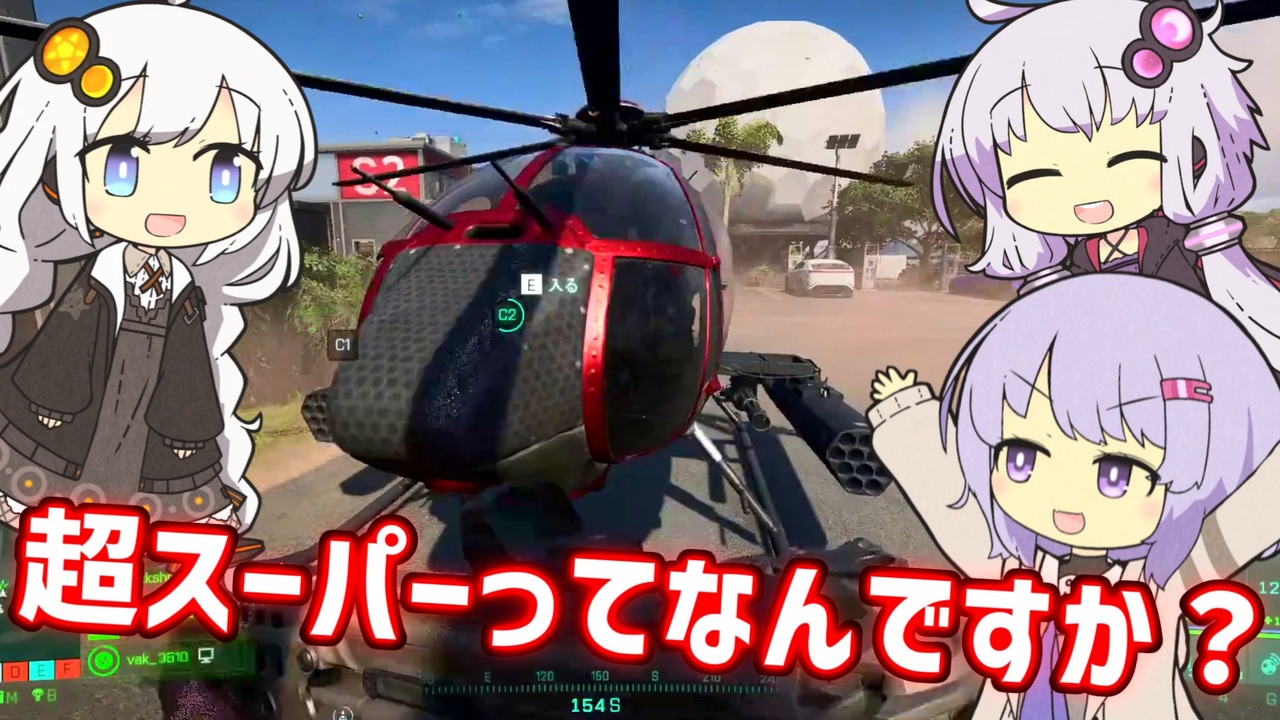 どうも、JACK(将軍)です。<br>今回も、Battlefield2042をやっていきます。PC版、キーボード・マウス操作です。<br>録画が溜まってきたので続きました!やったぜ!<br>相変わらず、C5投げて遊んでます。無反動M5でヘリを落とすのも狙ってたり。<br><br>シーズン1が延期したり、相変わらずバグったり、ゲームが落ちたり、そもそも人がいない。<br>楽しいっちゃ楽しいのですが、流石にずっと遊ぶのは現状厳しいですよね…。<br>フレンドと遊ぶと楽しめる!と思ったけど、それはフレンドと遊ぶこと自体が楽しいだけでは???<br><br><br>楽しかった思い出を動画に出来て良かったなって思います。<br>視聴者の皆さんに感謝です!ありがとうございました!!<br><br><br>あかりちゃんは、<strong>vakさん</strong>です。BF2042のプレイ時間が333時間超えた人。やべぇ。<br><span style="font-size: 18px;">圧倒的に語彙力の無いゆかりんのBF2042 - 1→(<a href="https://www.nicovideo.jp/watch/sm39818826" class="watch">sm39818826</a>)</span><br><br>ゆかり(雫)ちゃんは、<strong>はなやすさん</strong>です。超スーパーなナイトバードのやべぇ人。やべぇ。<br><span style="font-size: 18px;">【BF2042】ゆかりとマキで戦場なう。@ナイトバード 5【VOICEROID+実況】→(<a href="https://www.nicovideo.jp/watch/sm39988752" class="watch">sm39988752</a>)</span><br><br>2人とも録画に付き合ってくれて感謝なのだ。<br><br><span style="color: #ff0000; font-size: 24px;">超スーパーってなんですか?</span><br><br>前回、たくさん広告して頂きました。<br>コメントもたくさん!ありがとうございます!<br><br><br>可愛いゆかりさんの立ち絵(<a href="https://seiga.nicovideo.jp/seiga/im10564427" target="_blank" rel="noopener">im10564427</a>):akihiyo様<br>可愛いあかりちゃんの立ち絵(<a href="https://seiga.nicovideo.jp/seiga/im10559196" target="_blank" rel="noopener">im10559196</a>):akihiyo様<br>可愛い雫ちゃんの立ち絵(<a href="https://seiga.nicovideo.jp/seiga/im10812109" target="_blank" rel="noopener">im10812109</a>):akihiyo様<br>いいね押し忘れ防止ちゃん(<a href="https://seiga.nicovideo.jp/seiga/im10742089" target="_blank" rel="noopener">im10742089</a>):ナカトミ様<br><br> <a href="https://www.nicovideo.jp/watch/sm39913938" class="watch">sm39913938</a>←前 次→<a href="https://www.nicovideo.jp/watch/sm40108563" class="watch">sm40108563</a><br><br>その他のpart1→<a href="https://www.nicovideo.jp/mylist/44911807" target="_blank" rel="noopener">mylist/44911807</a><br>時々生放送してたり→co1632431<br>twitter→<a href="https://twitter.com/jackshougun" target="_blank" rel="noopener nofollow">https://twitter.com/jackshougun</a><br>