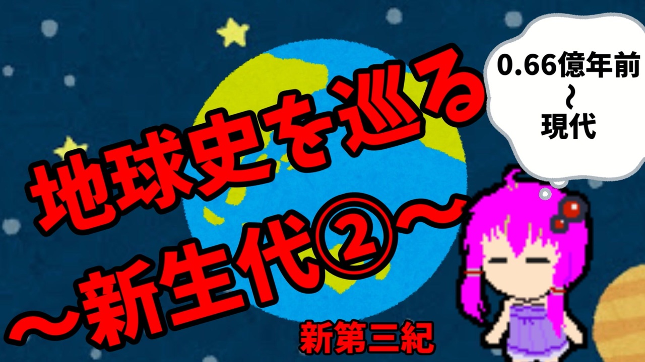 人類誕生を迎え最終回です<br>VOICEROID解説兼VOICEROID劇場みたいなゆるーい感じでやってくで<br>「いいね」でアフリカ類人猿の出自に関しての別説を紹介<br><br>YouTube版 <a href="https://youtu.be/3vNhGMPusvw" target="_blank" rel="noopener nofollow">https://youtu.be/3vNhGMPusvw</a><br><br>part1集 <a href="https://www.nicovideo.jp/mylist/69771199" target="_blank" rel="noopener">mylist/69771199</a><br><br>投稿告知等<br><a href="https://twitter.com/tuyukus97792543" target="_blank" rel="noopener nofollow">https://twitter.com/tuyukus97792543</a><br><br>新生代① 2/5現在までの広告者さん紹介(文字数制限のため敬称略)<br>sage ナーガ コメントニコり隊 山田将史 「お疲れさまでした。」ninicoco zero 多賀国府 キャッチ22 Emmett L Brown ちさ やまyama sunpaul (ノ)・ω・(ヾ)ムニムニ Ka-gerou おおうみ イースト 長袖 taka-b とろろ 金ちゃん EX3300 alpha ハロゲン木下 zero 今日源石 ひるねむし トンベリビギナー あぐにゃ とるって 18ban 山田竜胆太郎 野州 AI KaU うらマッハ お兄様 umitanu Emmett L Brown ばすたー 藁屋根 ごまちゅー ニセアカシヤモドキ てれふたる Lui wobara 俺専用 なのです あぐち アアア tanu リシュネ 42k しばぬい ブース ふもりお 鴨田染瑞 LH2NHI(nnd) 「うぽつです!ついに新生代」L880 素うどん K ヤマカガシ 酔醒 Åkira エンデバー 空海 航太郎 dbada ZiC 外反母趾 緑紫山坊寺 毒菜 ペケペケ農園 黒井日夏 カツオ cutsinco terua Ka-gerou 赤城山登頂記念 ゲスト とらこ mogeda yo-ji (カートン箱)^2 たけ 赤井こうちゃ Tamagosand BlaMon 小さな緑の人 さーいえすさー misd AMあざらし UCCYAN のほほん日本 じんけむ 一般人 大澤伝兵衛 こうじろう emptycan やぶねこ 泥酔千鳥足 へむへむ 水陸 エットリア who@ 桐原 nor とうふonふぁいあ 飛び出すスパナ ぶっつけ かじゅみ おろちょん ぽげムた 剛田幸村 46億年物語 storm tokai200x 聖イシュトヴァーンの冠 あまや K氏 aonuko kuro Kojicstage osugi 暮氷寒座 あきさば kawasemi gen EBA 丁型海防艦 りゆっか