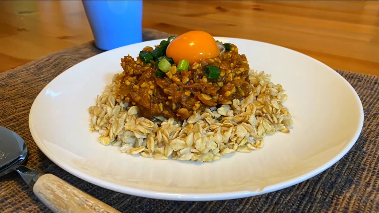 ■材料<br>タマネギ 1玉<br>サラダ油 小さじ1<br>塩 2つまみ<br>水 分量外<br>ニンニクチューブ 小さじ1<br>生姜チューブ 小さじ1<br>ニンジン 1/2本<br>セロリ 1/2本<br>トマト 1個<br>ひきわり納豆 3パック<br>ジャワカレー中辛 1/2パック<br>オートミール 60g<br>水 100ml<br>ネギ 適量<br>卵黄 1個<br><br>■レシピ<br>1. タマネギ・ニンジン・セロリを微塵切り、トマトは湯剥きして微塵切りにする。カレールーも微塵切りにし、納豆は水洗いにする。<br><br>2. サラダ油を敷いたフライパンに微塵切りにしたタマネギを入れる。塩を振り浸透圧を利用して水分を飛ばす。カラカラになったら水を少量加え強火にする。これを飴色になるまで続ける。<br><br>3. ニンニクチューブと生姜チューブ、微塵切りにしたニンジン・セロリ・トマトを加え全体を馴染ませる。水を全体が浸るくらいまで入れ弱火で煮込む。<br><br>4. 水分が飛んだら、刻んだカレールーと水洗いした納豆を入れ全体を馴染ませる。<br><br>5. オートミールを平皿に盛り水と和えた後、600wの電子レンジで2分加熱する。その後カレーを盛り付けて、ネギを散らし卵黄を乗せて完成。<br><br><br><br>■料理以外のサブチャンネルあります<br>とっくんのサブチャンネル<br><a href="https://youtube.com/channel/UCsU6Xe6NyrTwid56M9nC9ww" target="_blank" rel="noopener nofollow">https://youtube.com/channel/UCsU6Xe6NyrTwid56M9nC9ww</a><br><br>■レシピ本出しました<br>・Amazon<br><a href="https://www.amazon.co.jp/dp/4046047437" target="_blank" rel="noopener nofollow">https://www.amazon.co.jp/dp/4046047437</a><br>・KADOKAWA<br><a href="https://www.kadokawa.co.jp/product/32..." target="_blank" rel="noopener nofollow">https://www.kadokawa.co.jp/product/32...</a><br><br>■Twitterアカウントあります<br><a href="https://twitter.com/kuntotu" target="_blank" rel="noopener nofollow">https://twitter.com/kuntotu</a><br><br>■Instagramもあります<br><a href="https://www.instagram.com/kuntotu/" target="_blank" rel="noopener nofollow">https://www.instagram.com/kuntotu/</a><br><br>■ファンレター・プレゼントの宛先はこちら<br>150-0011<br>東京都渋谷区東1-26-20<br>東京建物東渋谷ビル8F<br>「株式会社carry on とっくん」宛<br>※冷蔵・冷凍が必要な、なま物の受付はできません。<br><br>■お仕事のご依頼等<br><a href="https://carry0n.co.jp/contact/corporation/" target="_blank" rel="noopener nofollow">https://carry0n.co.jp/contact/corporation/</a><br>