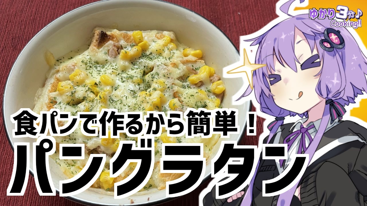 結月ゆかりを使用した料理動画です<br><br>最近読んで面白かった漫画は『いいね!』を押して確認してくれよな!<br><br>今回使用した材料<br><一人分><br>食パン(6枚切り):1枚 牛乳:150ml<br>コンソメ:小さじ1 マヨネーズ:小さじ2<br>コーン缶:適量 シーチキン:適量<br>パセリ:あれば <br><br><strong>シリーズ本数が多くなってきたのでオススメ動画をマイリストにまとめました</strong><br>オススメ料理の動画:<a href="https://www.nicovideo.jp/mylist/72688407" target="_blank" rel="noopener">mylist/72688407</a><br>再生数TOP10:<a href="https://www.nicovideo.jp/mylist/72688455" target="_blank" rel="noopener">mylist/72688455</a><br><br>投稿したイラスト (イタコさん投稿しました!):<a href="https://seiga.nicovideo.jp/seiga/im10896095" target="_blank" rel="noopener">im10896095</a><br>ツイッター:<a href="https://twitter.com/mrt89244817" target="_blank" rel="noopener nofollow">https://twitter.com/mrt89244817</a>