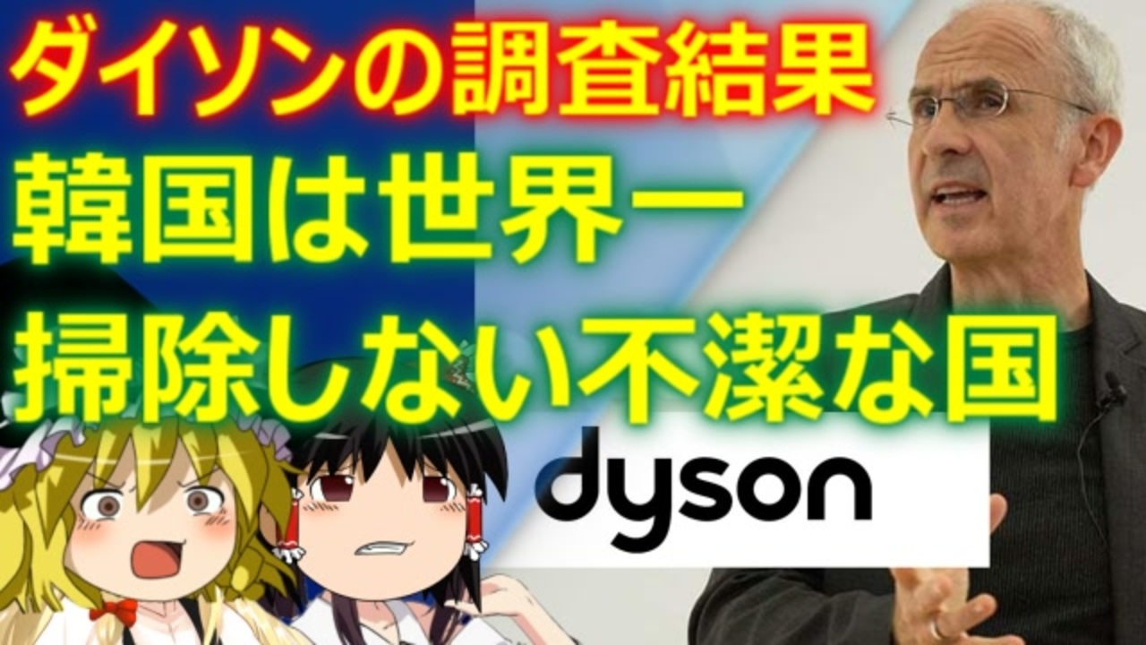 英ダイソン社がアンケートを実施。韓国は一番掃除しない不潔国家と判明したぞ!<br>(知ってたけどね)<br>【関連動画】<br>韓国人が手を洗わない理由:<a href="https://www.nicovideo.jp/watch/sm39685129" class="watch">sm39685129</a><br><br><br>YouTube上のセーフな話チャンネル<br><a href="https://www.youtube.com/channel/UCjSNLMlaGwq9C1BafK0vh9w" target="_blank" rel="noopener nofollow">https://www.youtube.com/channel/UCjSNLMlaGwq9C1BafK0vh9w</a><br><br>YouTube上のサブチャンネル<br><a href="https://www.youtube.com/channel/UCLB3-9hl2H4h1drSThv0y-A" target="_blank" rel="noopener nofollow">https://www.youtube.com/channel/UCLB3-9hl2H4h1drSThv0y-A</a><br><br>Rumble上のサブチャンネル<br><a href="https://rumble.com/user/Saku" target="_blank" rel="noopener nofollow">https://rumble.com/user/Saku</a><br><br>ニコニコ動画上の他のシリーズも宜しくね。<br><a href="https://www.nicovideo.jp/user/81752108/series" target="_blank" rel="noopener nofollow">https://www.nicovideo.jp/user/81752108/series</a><br>