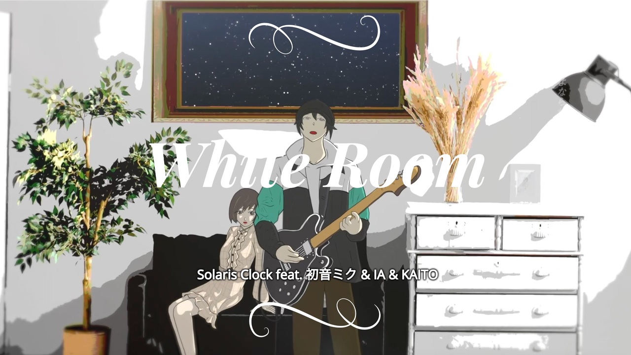 ボーカロイド楽曲は2投稿目です…宜しくお願いいたします!<br><br>- 「流れ星を君は追いかけてどこか遠くに消えてしまった」って言うんだ -<br><br>僕と君、そしてもう一人の僕という3人の登場人物の想いを3人のボーカロイドに歌唱して貰いました。<br><br>White Room (feat. 初音ミク & IA & KAITO)<br><br>作詞&作曲:Solaris Clock<br>Arrangement:顕 -aki-<br>Illustration&Animation:ヨシムラカズキ<br>Mix:Takayuki Tsuzuki(Altair Studio)<br>Mastering:Kazuaki Ide(WELL HANDS LAB)<br>Vocal arrangement:macaronP<br> 畑中 ゆう<br>Movie:紺屋本 綴<br><br><br>原曲(いゔどっと様、水槽様ゲストボーカル)→<a href="https://youtu.be/ldbXdsIL_gY" target="_blank" rel="noopener nofollow">https://youtu.be/ldbXdsIL_gY</a><br>サブスク→<a href="https://linkco.re/AeEaZAC6" target="_blank" rel="noopener nofollow">https://linkco.re/AeEaZAC6</a><br>Off vocal→<a href="https://piapro.jp/t/NdrR" target="_blank" rel="noopener nofollow">https://piapro.jp/t/NdrR</a><br><br>ーーー<br><br>下記は原曲公開時のニュースサイト掲載紹介文です。<br><br><br>Solaris Clockの新曲「White Room」は、ゲストボーカルにネットを中心に話題を集めるシンガーいゔどっと、そして水槽を迎え3人での歌唱でレコーディングされた楽曲。<br>従来のバンドサウンドとは違いEDMアレンジで、僕と君そしてもう一人の僕という3人の登場人物をゲストボーカルを迎え3人で歌うことで表現した作品だ。<br><br>楽曲のマスタリングにはyamaの「春を告げる」など、現在様々な作品を手がけるさぶろうを起用し、MVは新進気鋭のイラストレーターヨシムラカズキがアニメーションを描き制作した。<br><br>その他にも音源のアレンジは顕-aki-、ミックスはAltair Studio都筑陵之、MVの動画制作は紺屋本綴が担当している。<br><br><br />Twitter→<a href="https://twitter.com/Solaris_Clock" target="_blank" rel="noopener nofollow">https://twitter.com/Solaris_Clock</a><br>YouTube→<a href="https://www.youtube.com/user/solarisclock" target="_blank" rel="noopener nofollow">https://www.youtube.com/user/solarisclock</a><br>Instagram→<a href="https://www.instagram.com/solarisclock" target="_blank" rel="noopener nofollow">https://www.instagram.com/solarisclock</a><br>ニコニコ動画ボカロMV集→<a href="https://www.nicovideo.jp/mylist/72449675" target="_blank" rel="noopener">mylist/72449675</a><br>