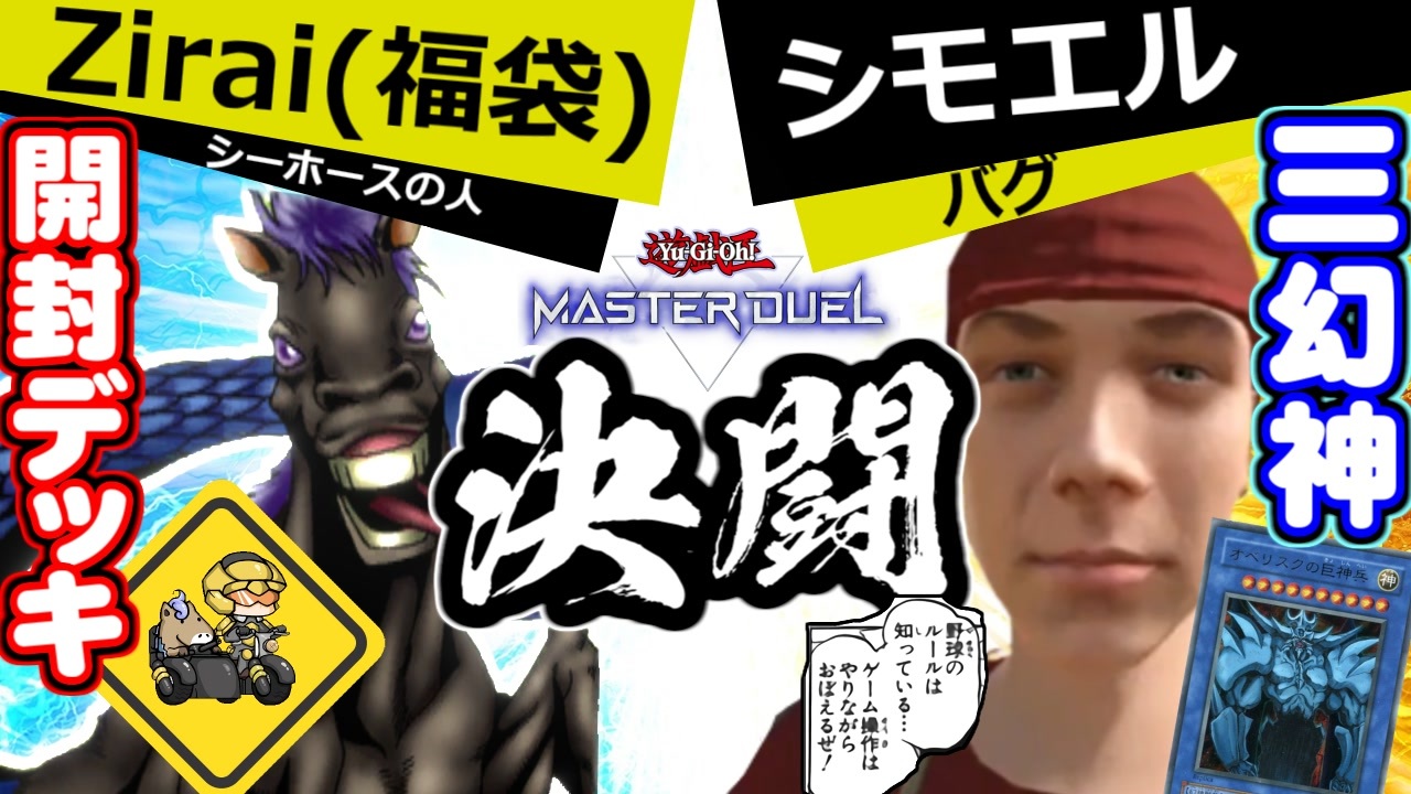 私の友人である<span style="color: #ff0000; font-size: 24px;">シモエル氏(@simoeru</span><span style="font-size: 24px;">)</span>と一緒にコラボしました!<br><br>今回はシモエルさんと直接対決!!!!<br>シモエルさんの動画見た人はオチわかってるかもしれませんが<br>シモエルさんの決闘者としての成長をぜひ見て下さい!<br><br><br><span style="font-size: 24px;"><strong>次回 Zirai(福袋)vs愛の戦士 </strong></span><span style="color: #ff0000; font-size: 24px;"><strong>youtubeで先行公開中!</strong></span><br><span style="font-size: 24px;"><a href="https://youtu.be/RIJBQeGSRvk" target="_blank" rel="noopener nofollow">https://youtu.be/RIJBQeGSRvk</a></span><br><br><span style="font-size: 18px;"><strong>シモエルさんサイドの動画 <br><a href="https://www.nicovideo.jp/watch/sm39986152" class="watch">sm39986152</a></strong></span><br><br><br><span style="font-size: 16px;"><strong>youtubeチャンネル</strong></span><br><span style="color: #006699; font-size: 14px;"><a href="https://www.youtube.com/channel/UCFpm1YfJx1HvxdiySMqKSKA" target="_blank" rel="noopener nofollow">https://www.youtube.com/channel/UCFpm1YfJx1HvxdiySMqKSKA</a></span><br><br>拾ったカードでデュエル <span style="color: #006699;"><a href="https://www.nicovideo.jp/mylist/32652388" target="_blank" rel="noopener">mylist/32652388</a></span><br><br>BGMお借りしました。 <a href="https://www.youtube.com/watch?v=YXnpEJet5gg" target="_blank" rel="noopener nofollow">https://www.youtube.com/watch?v=YXnpEJet5gg</a>