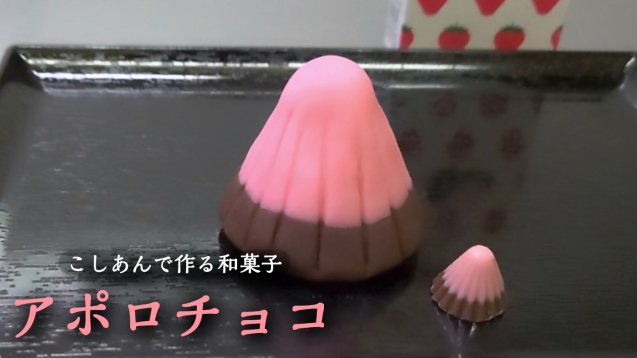 もうすぐバレンタイン!<br> チョコが苦手な方へのプレゼントやドッキリに!<br><br>・生地の作り方 <a href="https://www.nicovideo.jp/watch/sm39934630" class="watch">sm39934630</a><br><br>・生地の着色方法 <a href="https://www.nicovideo.jp/watch/sm39940450" class="watch">sm39940450</a><br><br>・他の練りきり和菓子 <br> <a href="https://nico.ms/mylist/71901218" target="_blank" rel="noopener nofollow">https://nico.ms/mylist/71901218</a><br><br>――――――分量と作り方――――――<br><br>★1個分の材料★<br> ―練りきりあん―<br> ・ピンク20g<br> ・水分を少し飛ばしたこしあん 20g<br> ・水少々<br><br>★使用する道具★<br> ・まな板シート<br> ・食品用ラップ<br> ・ペーパータオル<br> ・丸棒(ナイフ状)<br> ・ショットグラス<br> ・セロハンテープ<br><br>☆こしあんの水分を飛ばすのに使う道具☆<br> ・耐熱ボウル<br> ・はかり<br> ・へら<br><br>☆☆☆☆作り方と手順☆☆☆☆<br><br>―こしあんの水分の飛ばし方―<br><br>※今回は全量使いません<br> ・こしあん130g<br><br>①耐熱性のボウルにヘラを使ってこしあんをはりつける<br>②レンジで30秒~1分加熱(500W)<br>③再びヘラで練って混ぜ、ボウルにはりつけてレンジで30秒加熱<br>④練って手にくっつかなくなるまで③を繰り返す<br>⑤使用する分量をはかって丸めてラップをしておく<br><br><br>―――アポロチョコ―――<br><br>①まな板シートを円すいにしてセロハンテープで止め、ショットグラスへのせる<br>②ピンクの生地を三角に整え①の中に入れて軽く押し込む<br>③こしあんを少しつぶして②の上に水でくっつけて押す<br>④全体を上から押す<br>⑤まな板シートを外して軽く整える<br>⑥丸棒で17本ギザギザを作って完成!<br><br><br>☆☆☆動画内で使用したもの☆☆☆ <br><br>―丸棒セット―<br> <a href="https://www.amazon.co.jp/dp/B00VJADZAM" target="_blank" rel="noopener nofollow">https://www.amazon.co.jp/dp/B00VJADZAM</a><br>・100円ショップでも売ってます<br><br>―消毒液―<br> ドーバーパストリーゼ77<br> <a href="https://www.amazon.co.jp/dp/B002UMD5BM" target="_blank" rel="noopener nofollow">https://www.amazon.co.jp/dp/B002UMD5BM</a><br><br>―着色料―<br> ・WILTON(ウィルトン)アイシングカラー8色セット<br> <a href="https://www.amazon.co.jp/dp/B07X45438D" target="_blank" rel="noopener nofollow">https://www.amazon.co.jp/dp/B07X45438D</a><br><br><br>☆☆☆和菓子の入れ物☆☆☆<br>―アルトカップ―<br><a href="https://www.cotta.jp/products/detail.php?product_id=000539" target="_blank" rel="noopener nofollow">https://www.cotta.jp/products/detail.php?product_id=000539</a><br>―――――――――――――――――――――――――――<br><br /><br>【YouTube】<br>―chisakiチャンネル―<br><a href="https://youtube.com/@chisaki_ch" target="_blank" rel="noopener nofollow">https://youtube.com/@chisaki_ch</a><br><br>【X】<br><a href="https://x.com/chisaki_sou" target="_blank" rel="noopener nofollow">https://x.com/chisaki_sou</a><br><br>【Instagram】<br><a href="https://www.instagram.com/chisaki_sonosuke" target="_blank" rel="noopener nofollow">https://www.instagram.com/chisaki_sonosuke</a><br><br>【Tik Tok】<br><a href="https://www.tiktok.com/@chisaki138" target="_blank" rel="noopener nofollow">https://www.tiktok.com/@chisaki138</a><br><br>【素材】<br>・ムビデコ – 無料素材動画サイト <a href="https://mubideco.com" target="_blank" rel="noopener nofollow">https://mubideco.com</a><br><br>【音源】<br>・魔王魂<br><a href="https://maoudamashii.jokersounds.com" target="_blank" rel="noopener nofollow">https://maoudamashii.jokersounds.com</a><br><br>・フリーBGM DOVA-SYNDROME<br><a href="https://dova-s.jp/_mobile" target="_blank" rel="noopener nofollow">https://dova-s.jp/_mobile</a><br><br>・フリー音楽素材 H/MIX GALLERY<br><a href="http://www.hmix.net" target="_blank" rel="noopener nofollow">http://www.hmix.net</a><br><br>・甘茶の音楽工房 <a href="https://amachamusic.chagasi.com" target="_blank" rel="noopener nofollow">https://amachamusic.chagasi.com</a><br><br>・効果音ラボ<br><a href="https://soundeffect-lab.info" target="_blank" rel="noopener nofollow">https://soundeffect-lab.info</a><br><br>・OtoLogic<br><a href="https://otologic.jp" target="_blank" rel="noopener nofollow">https://otologic.jp</a><br><br>・株式会社ピクセル<br><a href="http://pixel-co.com/" target="_blank" rel="noopener nofollow">http://pixel-co.com/</a><br><br>・TELOPICT.com<br><a href="https://telopict.com/" target="_blank" rel="noopener nofollow">https://telopict.com/</a><br><br>・フリー効果音 On-Jin ~音人~<br> <a href="https://on-jin.com/sound/" target="_blank" rel="noopener nofollow">https://on-jin.com/sound/</a><br>