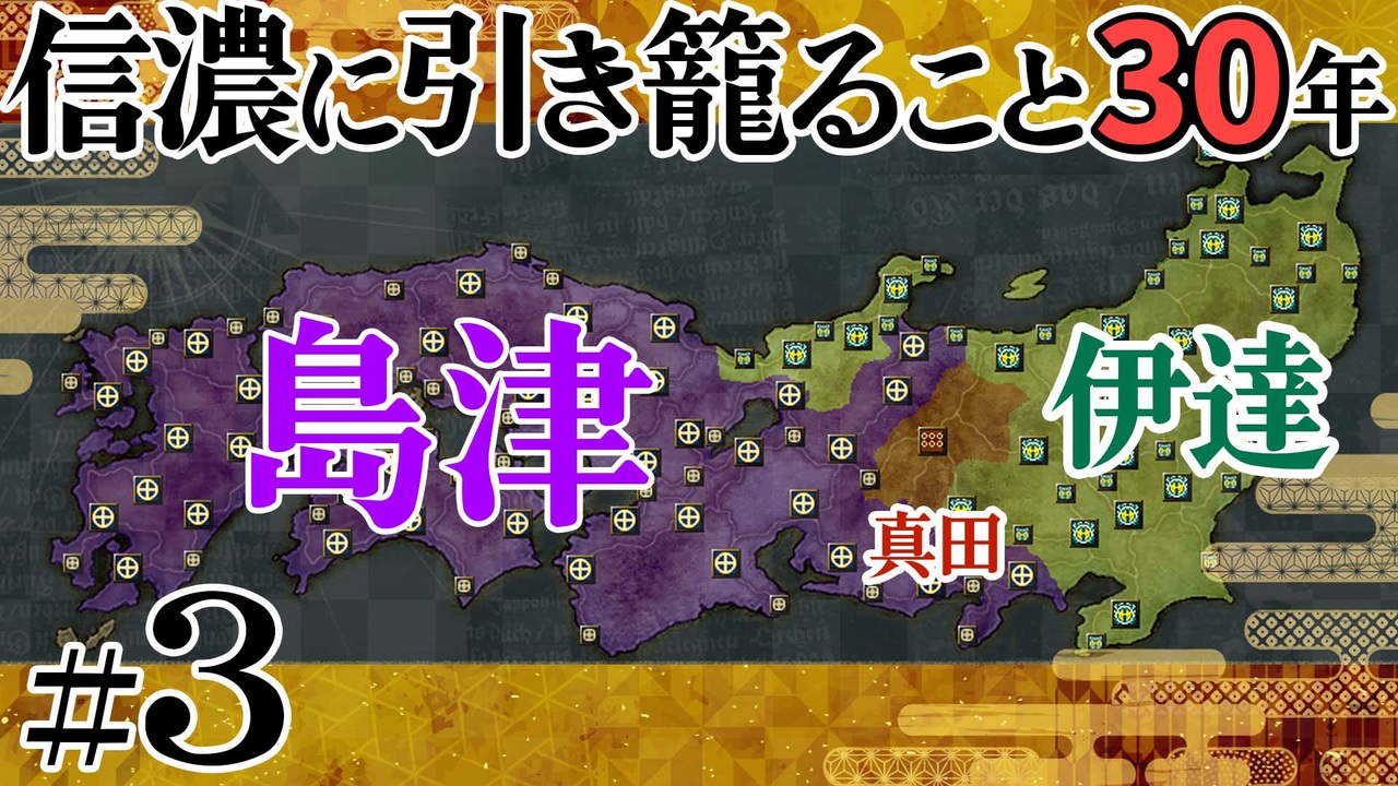 <a href="https://www.nicovideo.jp/watch/sm40026294" class="watch">sm40026294</a>⇦前 パート2 次 パート4➡<a href="https://www.nicovideo.jp/watch/sm40051941" class="watch">sm40051941</a> <br>最初パート1➡<a href="https://www.nicovideo.jp/watch/sm40016108" class="watch">sm40016108</a><br><br><br><br>【シナリオ】夢幻の如く 上級<br> シナリオ開始30年が経過した状況からの開始です<br><br>【目標】<br>・昌幸が死ぬまでに天下統一(全ての城を制圧)<br>昌幸は5等級までの家宝、医書で延命可<br><br>【やりたいこと】<br>・真田十勇士のイベントを行いたい<br>・水軍を多いに活用したい<br>・技術をできるかぎり極めたい<br><br>※steam版(PC)を購入、windows10でプレイ。<br>問題点:環境はwindows8.1までなのでwindows10では不具合が出るかもしれません。<br>購入を考える際はご注意ください。<br>私の場合は、キーボードを使うとゲームがフリーズします。(私はまだやっていませんが、グーグル日本語入力を入れれば治るそうです)<br>ですので、マウスのみでプレイをしています。<br>部隊の中継点の設定に難がありますが、他は特に支障はない感じです。<br><br>―――――――――――――――――――――――――――<br>◇「アシェの実況プレイ~Part1集~」のマイリスト:<a href="https://www.nicovideo.jp/mylist/56327957" target="_blank" rel="noopener">mylist/56327957</a><br>―――――――――――――――――――――――――――<br>◇Twitter(アシェ):<a href="https://twitter.com/AcierRoi" target="_blank" rel="noopener nofollow">https://twitter.com/AcierRoi</a><br>◇Twitter(レシル):<a href="http://twitter.com/reciru" target="_blank" rel="noopener nofollow">http://twitter.com/reciru</a><br><br>©コーエーテクモゲームス All rights reserved.<br><br>