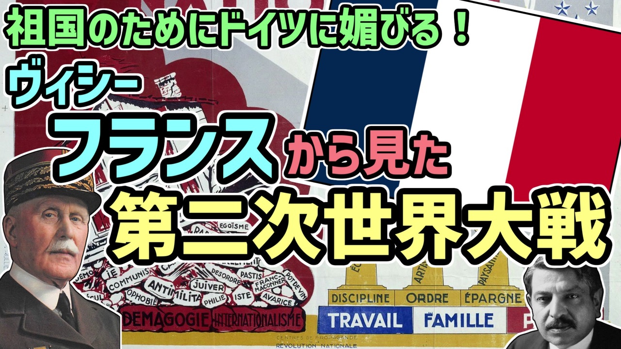 今回は主にヴィシーフランスから見た第二次世界大戦について解説します。<br><br>次回:<a href="https://www.nicovideo.jp/watch/sm41911344" class="watch">sm41911344</a><br>前回:<a href="https://www.nicovideo.jp/watch/sm37685108" class="watch">sm37685108</a><br>マイリスト:<a href="https://www.nicovideo.jp/mylist/66079510" target="_blank" rel="noopener">mylist/66079510</a><br><br>ご意見・ご感想・ご要望があればぜひコメントしてください。<br>内容の都合上かなり端折ってますがご了承ください。<br><br>ついったー<br><a href="https://twitter.com/youz26400114" target="_blank" rel="noopener nofollow">https://twitter.com/youz26400114</a><br><br>欲しいものリスト<br><a href="https://www.amazon.co.jp/hz/wishlist/ls/26SYYFRSTGV7Y/" target="_blank" rel="noopener nofollow">https://www.amazon.co.jp/hz/wishlist/ls/26SYYFRSTGV7Y/</a>