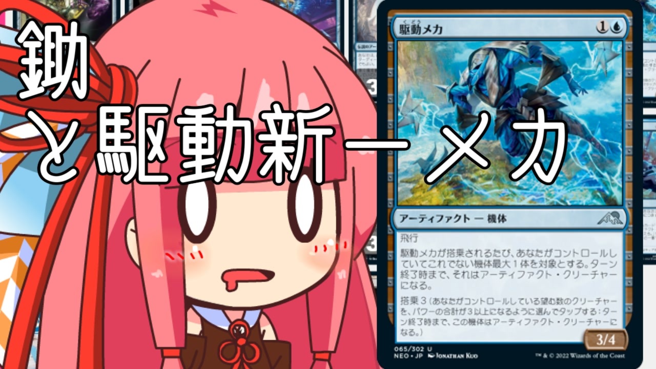 PCファンを取り換えたので初投稿です。<br>クソデッカーです。<br><br>BGM:shiso<br> 錬金術師の錆びた釜<br><br><br>ハースストーンのほうのマイリスト:<a href="https://www.nicovideo.jp/mylist/62397965" target="_blank" rel="noopener">mylist/62397965</a><br>今シリーズのマイリスト:<a href="https://www.nicovideo.jp/mylist/70716776" target="_blank" rel="noopener">mylist/70716776</a><br>前回:<a href="https://www.nicovideo.jp/watch/sm40027318" class="watch">sm40027318</a><br>次回:<a href="https://www.nicovideo.jp/watch/sm40055135" class="watch">sm40055135</a><br><br>Twitter:@siki_sikigamin<br>(クソデッカー茜ちゃんでよくエゴサしてます。)<br><br>デッキ<br>4 有能な整備士 (NEO) 16<br>2 ポータブル・ホール (AFR) 33<br>3 月罠の試作品 (NEO) 69<br>3 ウォーターディープの黒杖 (AFR) 48<br>4 巧妙な鍛冶 (AFR) 21<br>3 駆動メカ (NEO) 65<br>2 攪乱プロトコル (NEO) 51<br>4 巨大な鋤 (KHM) 236<br>4 継ぎ接ぎ自動機械 (NEO) 254<br>2 メカ巨神のコア (NEO) 249<br>3 神童の試作機 (NEO) 231<br>3 エメリアの呼び声 (ZNR) 12<br>3 現実の強奪 (NEO) 75<br>3 平地 (NEO) 284<br>7 島 (NEO) 286<br>4 さびれた浜 (MID) 260<br>4 連門の小道 (KHM) 260<br>2 宝物庫 (AFR) 261<br>
