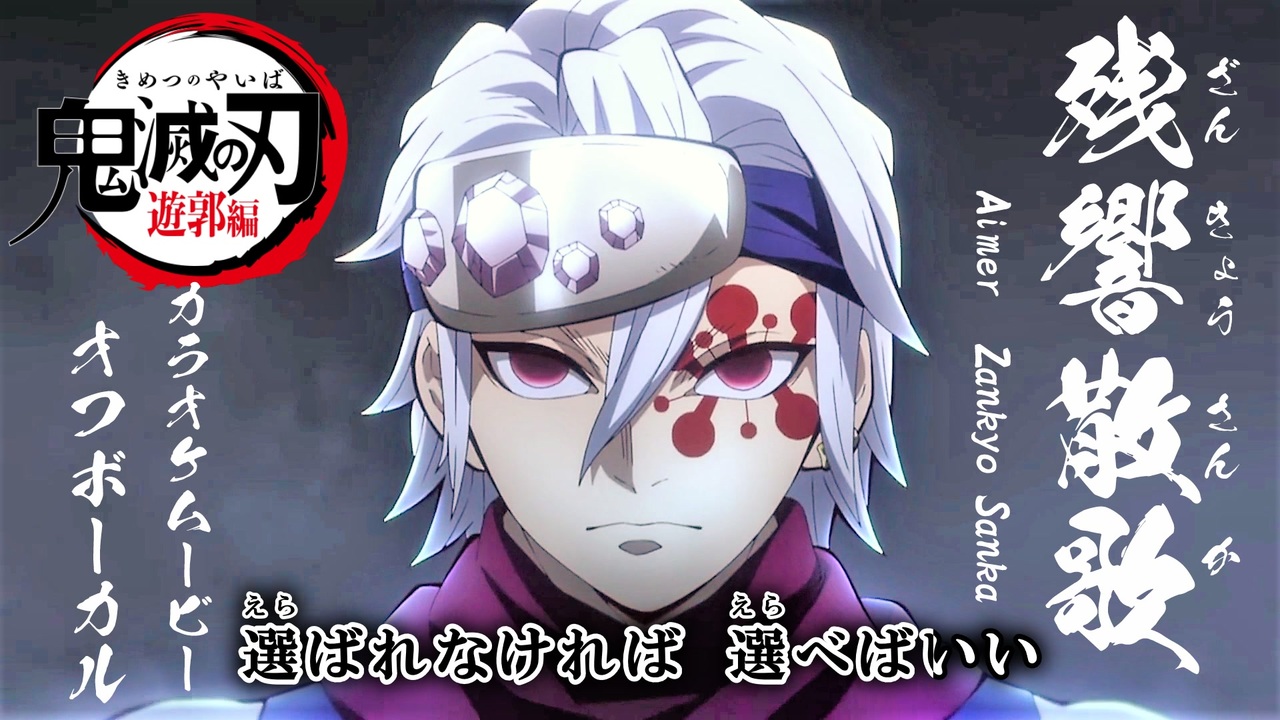 ■オンボーカル→ <a href="https://youtu.be/NFhbC29n-lc" target="_blank" rel="noopener nofollow">https://youtu.be/NFhbC29n-lc</a> (YouTube)<br><br>TVアニメ『鬼滅の刃 遊郭編』OP主題歌『残響散歌/Aimer』の、ニコカラoff vocal(フル・高画質MAD映像付き)です。<br>歌詞は全てふりがな付き。<br>歌いやすいように少しだけボーカルを残しています。ガイドボーカル程度にお考え下さい。<br><br>遊郭編 最終回は、3回観て3回泣きました(笑)<br>サムネの天元様がカッコ良くてお気に入りです♡<br>「残響散歌」というタイトル文字も、実際に鬼滅のアニメで使われている「黒龍爽」というフォントを使用してみました。<br><br>■無限列車編 OP主題歌『明け星/LiSA』も投稿しています♡<br>On Vocal → <a href="https://youtu.be/mKSPKZK9TRk" target="_blank" rel="noopener nofollow">https://youtu.be/mKSPKZK9TRk</a> (YouTube)<br>Off Vocal → <a href="https://www.nicovideo.jp/watch/sm39620067" class="watch">sm39620067</a> (ニコニコ)<br><a href="https://youtu.be/FqJMZaL8SQY" target="_blank" rel="noopener nofollow">https://youtu.be/FqJMZaL8SQY</a> (YouTube)<br><br>YouTubeには他にも呪術廻戦やヒロアカ、東京リベンジャーズ、BORUTO等のオンボーカルバージョンも投稿しています♪<br>ぜひ覗いてみてください♡<br><br>鬼滅の刃_遊郭編/アニメソング/