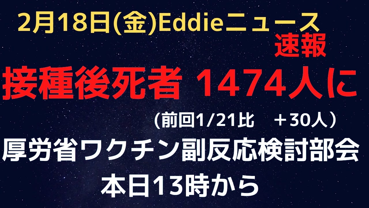 参考URL<br><a href="https://www.mhlw.go.jp/stf/shingi2/0000208910_00038.html" target="_blank" rel="noopener nofollow">https://www.mhlw.go.jp/stf/shingi2/0000208910_00038.html</a><br><br><br />Eddieと申します。<br>少し引棒めいたニュースを集めて喋っています。<br>よろしくお願いします。<br><br>23時過ぎYouTubeライブ配信(マイペース配信中)<br>「Eddieのホンマやと思うニュース3」<br><a href="https://www.youtube.com/channel/UCKaftD6X-qeHC5Vd9CMCedw" target="_blank" rel="noopener nofollow">https://www.youtube.com/channel/UCKaftD6X-qeHC5Vd9CMCedw</a><br><br>ニコ生は毎週土曜21時半〜(もしくは日曜21時半〜)<br><br>twitter<br>@Eddie2travel<br><br>YouTubeライブ配信1000回記念グッズなど販売中<br><a href="https://suzuri.jp/Eddie-Homma3" target="_blank" rel="noopener nofollow">https://suzuri.jp/Eddie-Homma3</a><br><br>