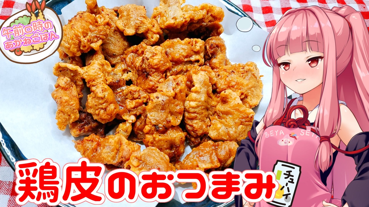ちょーっと(先週サボったせいで)忙しかったので今回は省エネ版で失礼します!<br>来週はちゃんと作るので!!<br><br>いつぞやSNSで見かけたレシピをアレンジして作りました。<br>(自分にはあまりにも濃すぎたので)<br><br><br>【材料】<br>鶏皮 400g<br><br>粗挽きの黒胡椒 小さじ2<br>チリパウダー 小さじ2<br>にんにく 小さじ2<br>しょうが 小さじ2<br>オールスパイス 小さじ2<br>パプリカパウダー 小さじ8<br>味の素 小さじ8<br><br>強力粉 大さじ8<br>卵 2個<br>豆乳 小さじ3<br>塩 小さじ1~1.5<br><br><br>いつもたくさんの再生・コメント・マイリス・広告・いいね、ありがとうございます!!!<br>特にコメントが面白くて楽しませてもらってます(>ω<)<br>動画を作る原動力(๑•̀ㅂ•́)و✧ゲット!<br><br><br>今回は省エネ版で済ましてしまった茜ちゃんに陳謝!<br>そして視聴してくださったあなたに最大の感謝を。<br><br><br>前:ナポリタン【<a href="https://www.nicovideo.jp/watch/sm39991644" class="watch">sm39991644</a>】<br>次:豆腐ハンバーグ【<a href="https://www.nicovideo.jp/watch/sm40094028" class="watch">sm40094028</a>】<br><br><br>料理動画の始まりはここから:ひだまりカレー【<a href="https://www.nicovideo.jp/watch/sm35999557" class="watch">sm35999557</a>】<br><br>ニコ動:<a href="https://www.nicovideo.jp/user/89975609" target="_blank" rel="noopener nofollow">https://www.nicovideo.jp/user/89975609</a><br>You Tube:<a href="https://www.youtube.com/channel/UCWk_a8v_7xG5qCJH8vK6ljg" target="_blank" rel="noopener nofollow">https://www.youtube.com/channel/UCWk_a8v_7xG5qCJH8vK6ljg</a><br>Twitter:<a href="https://twitter.com/yosugacafe_" target="_blank" rel="noopener nofollow">https://twitter.com/yosugacafe_</a> <br><br>ご支援:<a href="https://www.amazon.jp/hz/wishlist/ls/GF2Y4WQQ3UT4?ref_=wl_share" target="_blank" rel="noopener nofollow">https://www.amazon.jp/hz/wishlist/ls/GF2Y4WQQ3UT4?ref_=wl_share</a><br><br>【Ru-a(姉)と共同のアカウント開設しました!】<br>ニコ動:<a href="https://www.nicovideo.jp/user/89325934" target="_blank" rel="noopener nofollow">https://www.nicovideo.jp/user/89325934</a><br>You Tube:<a href="https://www.youtube.com/channel/UC12q0n98NSyGykCbsP2G8ig" target="_blank" rel="noopener nofollow">https://www.youtube.com/channel/UC12q0n98NSyGykCbsP2G8ig</a><br>Twitter:<a href="https://twitter.com/witchdouble2" target="_blank" rel="noopener nofollow">https://twitter.com/witchdouble2</a>