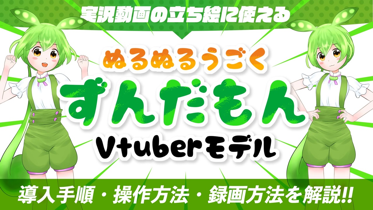 【追記】コメントで質問のあった最後の方のBGMは実況動画用にうp主が作ったものです。説明欄下のリンク先(SoundCloud)からダウンロードできます※BGM名 Toward The Future<br><br>みんな大好きずんだもんのVtuberモデルをつくりました。<br>これで誰でもずんだもんになれるのだ!<br>動画ではVOICE VOX実況の立ち絵として使用するための導入手順・操作方法・録画方法を解説します。<br><br><a href="#" class="seekTime" data-seekTime="00:00" onclick="seekNicoPlayer('#00:00'); return false;">#00:00</a> 静止画立ち絵の紹介<br><a href="#" class="seekTime" data-seekTime="01:37" onclick="seekNicoPlayer('#01:37'); return false;">#01:37</a> トラッキング立ち絵の概要<br><a href="#" class="seekTime" data-seekTime="02:39" onclick="seekNicoPlayer('#02:39'); return false;">#02:39</a> メリットとデメリット<br><a href="#" class="seekTime" data-seekTime="04:06" onclick="seekNicoPlayer('#04:06'); return false;">#04:06</a> ずんだもんの動きと操作方法<br><a href="#" class="seekTime" data-seekTime="08:51" onclick="seekNicoPlayer('#08:51'); return false;">#08:51</a> 音声リップシンクの設定<br><a href="#" class="seekTime" data-seekTime="09:50" onclick="seekNicoPlayer('#09:50'); return false;">#09:50</a> 録画の準備<br><a href="#" class="seekTime" data-seekTime="11:59" onclick="seekNicoPlayer('#11:59'); return false;">#11:59</a> 録画と演技<br><a href="#" class="seekTime" data-seekTime="13:43" onclick="seekNicoPlayer('#13:43'); return false;">#13:43</a> 仕上がった動画の確認<br><br>■静止画立ち絵ダウンロード <a href="https://seiga.nicovideo.jp/seiga/im10900200" target="_blank" rel="noopener">im10900200</a><br>■トラッキング立ち絵ダウンロード<a href="https://drive.google.com/file/d/12hAPjhn9N9D6kOkNvDnuiccRGu7MWIgC/view?usp=sharing" target="_blank" rel="noopener nofollow">https://drive.google.com/file/d/12hAPjhn9N9D6kOkNvDnuiccRGu7MWIgC/view?usp=sharing</a><br><br>■コンテンツツリーへ登録してくれたらうれしいのだ<br><br>VOICE VOX ずんだもん <a href="https://voicevox.hiroshiba.jp/" target="_blank" rel="noopener nofollow">https://voicevox.hiroshiba.jp/</a><br><br><br /><br>■シリーズ一覧 <a href="https://www.nicovideo.jp/user/425027/series" target="_blank" rel="noopener nofollow">https://www.nicovideo.jp/user/425027/series</a><br><br>■静画 <a href="https://seiga.nicovideo.jp/user/illust/425027" target="_blank" rel="noopener">user/illust/425027</a><br>■Twitter <a href="https://twitter.com/satoxie" target="_blank" rel="noopener nofollow">https://twitter.com/satoxie</a><br>■soundcloud <a href="https://soundcloud.com/kcoyassan/" target="_blank" rel="noopener nofollow">https://soundcloud.com/kcoyassan/</a>