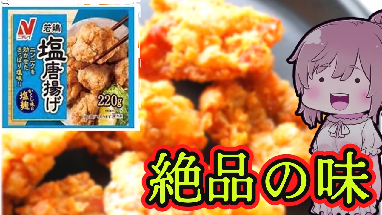 ささら「たぶん冷凍塩唐揚げは初めて」<br><br><strong>youtubeチャンネル(登録してくれると死ぬほど喜びます!!)</strong><br><a href="https://www.youtube.com/channel/UCnJOWymDsLlP5cxRWOrO9rg" target="_blank" rel="noopener nofollow">https://www.youtube.com/channel/UCnJOWymDsLlP5cxRWOrO9rg</a><br><a href="https://twitter.com/gyuusha3" target="_blank" rel="noopener nofollow">https://twitter.com/gyuusha3</a><br><br>支援物資受付<br><a href="https://www.amazon.jp/hz/wishlist/ls/QWW9ID1H80BT?ref_=wl_share" target="_blank" rel="noopener nofollow">https://www.amazon.jp/hz/wishlist/ls/QWW9ID1H80BT?ref_=wl_share</a><br><br><strong>▼もぐもぐ飲食レポ(youtubeに、ほかの食レポも有ります)</strong><br>★5 日清中華 上海焼きそばオイスターソース味 <a href="https://www.nicovideo.jp/watch/sm39935833" class="watch">sm39935833</a><br>★5 トップバリュー ごろっとうまい若鶏ももから揚げ <a href="https://www.nicovideo.jp/watch/sm40019885" class="watch">sm40019885</a><br>★4 爽 濃厚完熟バナナ <a href="https://www.nicovideo.jp/watch/sm40036397" class="watch">sm40036397</a><br>★4 QTTAクリームカレーチーズ味 <a href="https://www.nicovideo.jp/watch/sm40046601" class="watch">sm40046601</a><br>★5(注意) ニチレイ 若鶏塩唐揚げ <a href="https://www.nicovideo.jp/watch/sm40070578" class="watch">sm40070578</a><br><br><strong>▼満腹スヤスヤ部</strong><br>スーパー真タルチキ丼猛翔伝 vsささら <a href="https://www.nicovideo.jp/watch/sm39750014" class="watch">sm39750014</a><br>LLポテトソーセージバーグ明日へゴーゴー大宇宙SP <a href="https://www.nicovideo.jp/watch/sm39814144" class="watch">sm39814144</a><br>炊き込み七味マヨ牛丼ぎゅうどんドン丼! <a href="https://www.nicovideo.jp/watch/sm39884542" class="watch">sm39884542</a><br>こんこんこんびーふニンニクあぶらかたぶらダイナマイト炒飯 <a href="https://www.nicovideo.jp/watch/sm39944910" class="watch">sm39944910</a><br>ぴったんこ2000キロカロリーinスシロー <a href="https://www.nicovideo.jp/watch/sm40011085" class="watch">sm40011085</a><br><br><strong>▼ささきり飯</strong><br>ぺぺたまうどん PTA10:32 <a href="https://www.nicovideo.jp/watch/sm39789069" class="watch">sm39789069</a><br>ホルモン鍋うどん <a href="https://www.nicovideo.jp/watch/sm39849403" class="watch">sm39849403</a><br>特濃卵黄ユッケだれ漬けTKG <a href="https://www.nicovideo.jp/watch/sm39914512" class="watch">sm39914512</a><br>うまかっちゃんで焼きラーメン <a href="https://www.nicovideo.jp/watch/sm39977407" class="watch">sm39977407</a><br>リアル生ハムカルボナーラうどんアタック RTA 11分59秒 <a href="https://www.nicovideo.jp/watch/sm40055091" class="watch">sm40055091</a><br><br><strong>▼解説系動画一覧</strong><br>書記長はどうして偉いの? <a href="https://www.nicovideo.jp/watch/sm39333780" class="watch">sm39333780</a><br>アマゾンギフトをコンビニで使う方法 <a href="https://www.nicovideo.jp/watch/sm39407660" class="watch">sm39407660</a><br><br>編集→ YMM4、CeVIO さとうささら、すずきつづみ、東北きりたん<br>CoeFont STUDIO <a href="https://coefont.studio/" target="_blank" rel="noopener nofollow">https://coefont.studio/</a> voicevox:ずんだもん<br>音楽:OtoLogic、、効果音ラボ、youtubeオーディオ、甘茶の音楽工房<br>立ち絵:Noname さん と 新島秋一 さん