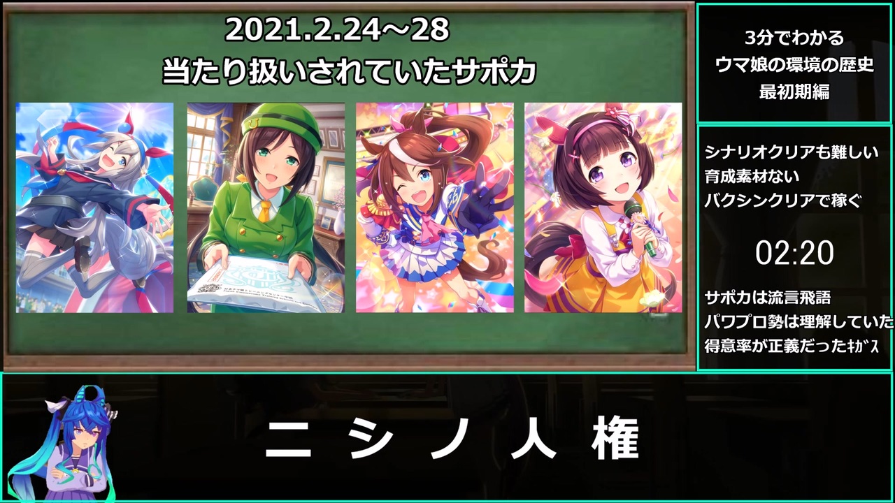 <br><br>対人戦基礎知識<br>初級編→<a href="https://www.nicovideo.jp/watch/sm39432258" class="watch">sm39432258</a><br>中級編→<a href="https://www.nicovideo.jp/watch/sm39432514" class="watch">sm39432514</a><br>スキル編→<a href="https://www.nicovideo.jp/watch/sm39433182" class="watch">sm39433182</a><br>スキルランキング編→<a href="https://www.nicovideo.jp/watch/sm39407156" class="watch">sm39407156</a><br>加速について→<a href="https://www.nicovideo.jp/watch/sm39583007" class="watch">sm39583007</a><br>コース別加速スキルランキング→<a href="https://www.nicovideo.jp/watch/sm39774678" class="watch">sm39774678</a><br><br>ツイッターも始めたのでよろしくなす<br><a href="https://twitter.com/umamusumetama" target="_blank" rel="noopener nofollow">https://twitter.com/umamusumetama</a><br><br>↓にあるシリーズから過去動画みれるぞ。<br>もうマイリスの時代じゃないんだ。悔しいけど仕方ないんだ。<br>