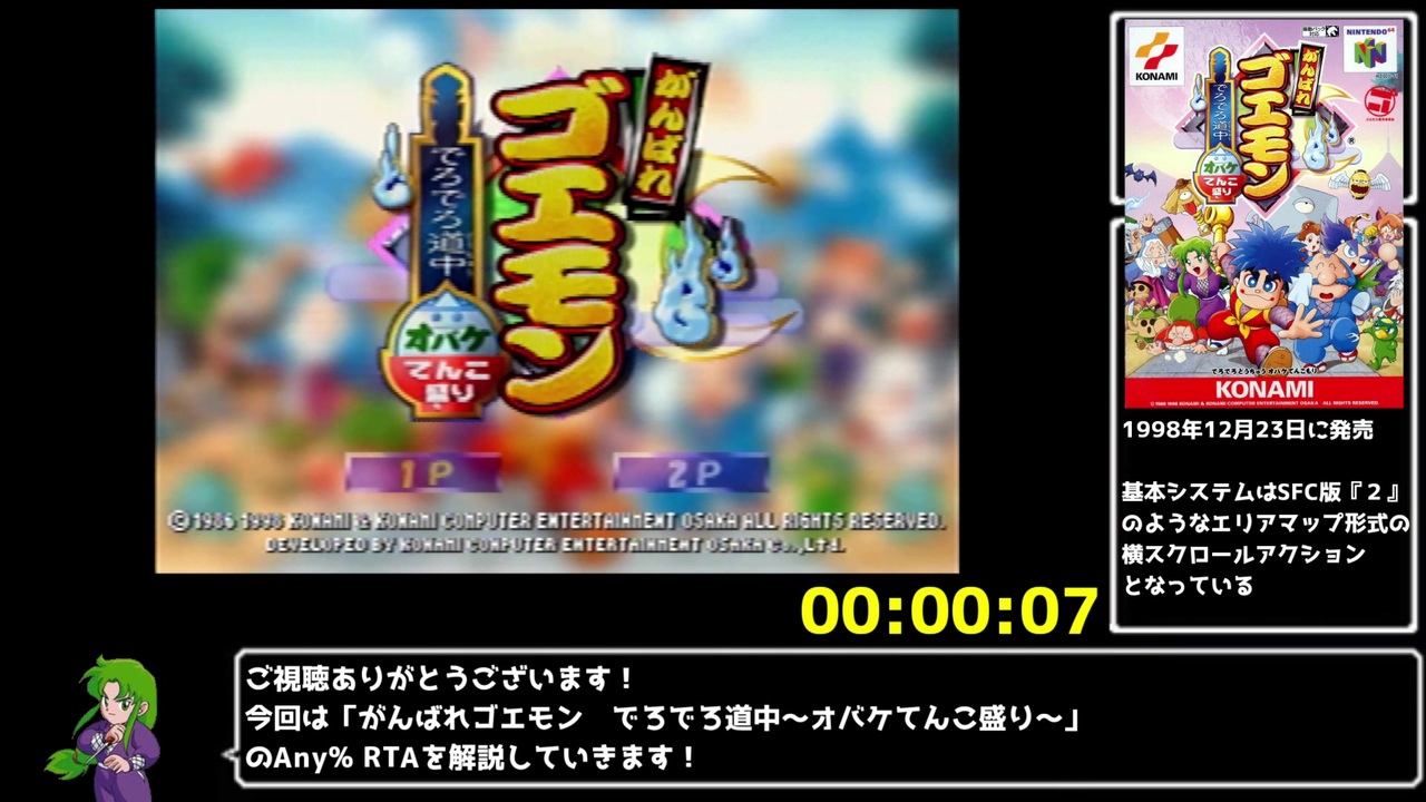 次⇒<a href="https://www.nicovideo.jp/watch/sm40122642" class="watch">sm40122642</a><br>マイリスト⇒<a href="https://www.nicovideo.jp/mylist/72797482" target="_blank" rel="noopener">mylist/72797482</a><br><br>大江戸エリア道中<br>今回は64ゴエモン作品でネオ桃山幕府のおどりと同じぐらい人気の高いでろでろ道中のRTAを解説してみました<br>よろしくお願いします<br><br>また、今回の解説で出てくるRTA技やバグについては別の動画(<a href="https://www.nicovideo.jp/watch/sm40071366" class="watch">sm40071366</a>)にて説明しており、こちらをご視聴いただいた前提でRTA解説をしております。<br><br><br>計測開始:ゲームをリセットした瞬間<br>計測終了:ラスボスのドウチュウ鬼を撃破し画面がホワイトアウトした瞬間<br><br>普段はTwitch( <a href="https://www.twitch.tv/koryuta_dayo" target="_blank" rel="noopener nofollow">https://www.twitch.tv/koryuta_dayo</a> )にてRTA配信をやっています<br>この動画をきっかけに、普段のRTA配信にも興味を持っていただけたら幸いです<br><br>ゴエモンRTA用のdiscordのサーバーを作ってみました!<br>(64作品が主ですが)ゴエモンRTAについて詳しく知りたい方はご利用ください!<br>⇒<a href="https://discord.gg/s2dV7XjPJS" target="_blank" rel="noopener nofollow">https://discord.gg/s2dV7XjPJS</a><br><br>