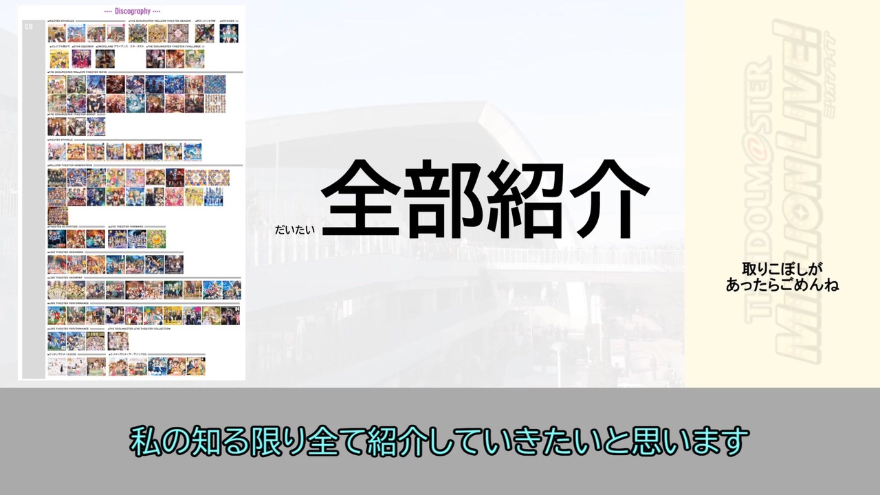 2022年2月27日時点における、『アイドルマスターミリオンライブ!』より登場した楽曲を含むCD全てについて解説しています。<br>2022年2月12~13日に開催されたライブ「THE IDOLM@STER MILLION LIVE! 8thLIVE Twelw@ve」にも寄せた内容となっております。<br><br>これから『ミリオンライブ!』の楽曲に触れる方、あるいは既にある程度知っている方も参考にしていただければと思います。<br><br>※今回からゆっくりを使用しています。<br><br>音楽出典:MusMus様<br><a href="https://musmus.main.jp/" target="_blank" rel="noopener nofollow">https://musmus.main.jp/</a><br><br><br>【コミカライズ『Blooming Clover』のブログ「Next to Clover」!】<br><a href="http://blog.livedoor.jp/next_to_clover/" target="_blank" rel="noopener nofollow">http://blog.livedoor.jp/next_to_clover/</a><br><br><br><br>【追記】<br>公式とネタが被ってしまった……<br><a href="https://www.youtube.com/watch?v=GxPRJqKTSDg" target="_blank" rel="noopener nofollow">https://www.youtube.com/watch?v=GxPRJqKTSDg</a>