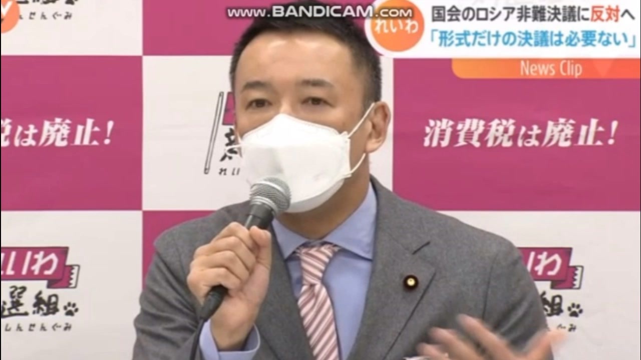 >れいわ新選組のホームページより <br>>今回の惨事を生み出したのはロシアの暴走、という一点張りではなく、米欧主要国がソ連邦崩壊時の約束であるNATO東方拡大せず、を反故にしてきたことなどに目を向け、この戦争を終わらせるための真摯な外交的努力を行う<br><a href="https://reiwa-shinsengumi.com/comment/11439/" target="_blank" rel="noopener nofollow">https://reiwa-shinsengumi.com/comment/11439/</a><br><br>>以下映像<br>あすの衆議院本会議で採択される予定のロシアのウクライナ侵攻を非難する決議にれいわ新選組が反対することがわかりました。<br> あす採択される予定のロシア非難決議案は、ロシアによるウクライナ侵攻について、「力による一方的な現状変更は断じて認められない」として、「最も強い言葉で非難する」としています。<br> <br>自民党や立憲民主党などの与野党が決議案に賛成する方針のなか、れいわ新選組はさきほど声明を出し、反対を表明しました。<br><a href="https://news.tbs.co.jp/newseye/tbs_newseye6005103.htm" target="_blank" rel="noopener nofollow">https://news.tbs.co.jp/newseye/tbs_newseye6005103.htm</a><br>