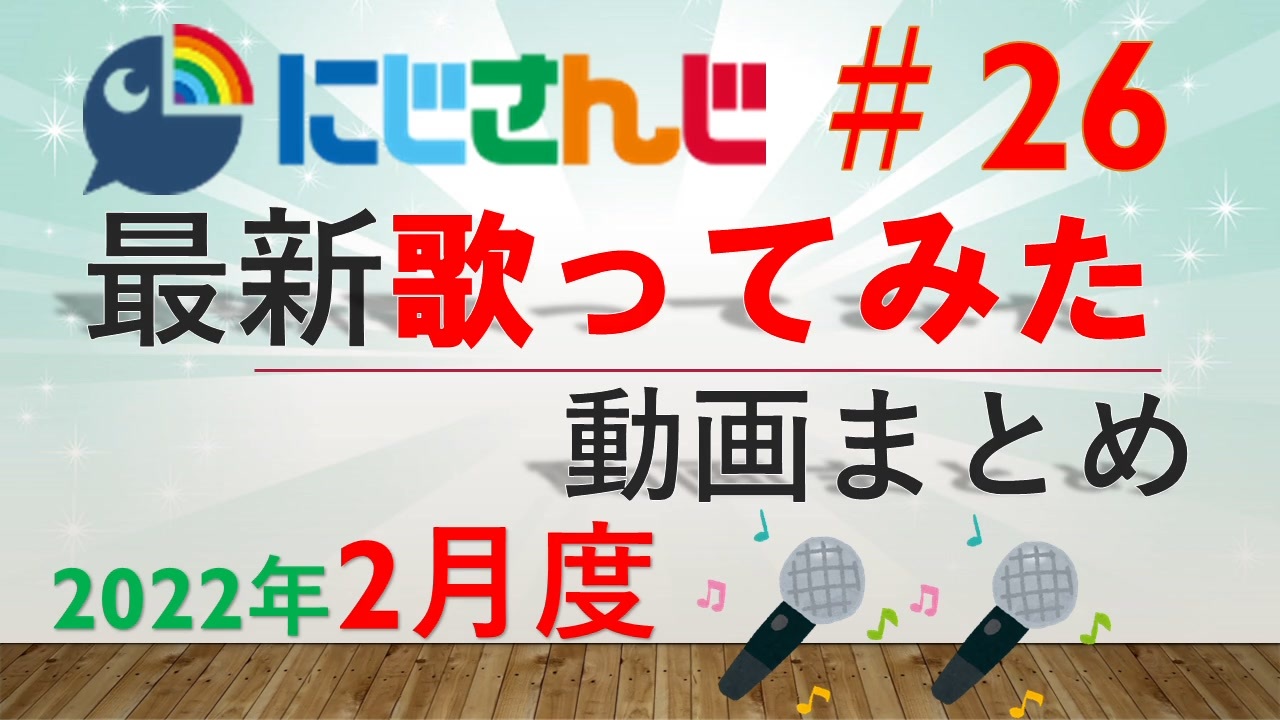 <span style="color: #00ff00;">◆</span>期間:2022年2月1日~2月28日<br><span style="color: #00ff00;">◆</span>対象:にじさんじライバーによる歌ってみた動画<br><span style="font-size: 10px;">(にじさんじのみ対象。JP・ID・KR・EN)</span><br><span style="color: #00ff00;">◆</span><span style="color: #262626;">参考サイト:</span><br>VMusic Ch. 様<br><a href="https://music.vtuber-ch.com/?gname=にじさんじALL" target="_blank" rel="noopener nofollow">https://music.vtuber-ch.com/?gname=にじさんじALL</a><br>にじさんじ非公式Wiki 様<br><a href="https://wikiwiki.jp/nijisanji/歌唱まとめ" target="_blank" rel="noopener nofollow">https://wikiwiki.jp/nijisanji/歌唱まとめ</a><br><br>前回(1月)の歌みたまとめ:<a href="https://www.nicovideo.jp/watch/sm39976149" class="watch">sm39976149</a><br>年間歌ってみたまとめ:<a href="https://www.nicovideo.jp/watch/sm39916452" class="watch">sm39916452</a><br><br>プレイリストは上記非公式Wiki内のプレイリストをご活用ください。<br>気になる歌動画を見つけたらぜひ、元動画をご覧ください!!<br><br>よく確認はしましたが、抜けがありましたらコメントをお願いいたします。<br><br>2月は日数が少ないのと、2月頭に歌ってみた動画の投稿が全体で一旦止まる事態があったため通常に比べ短めになっています。