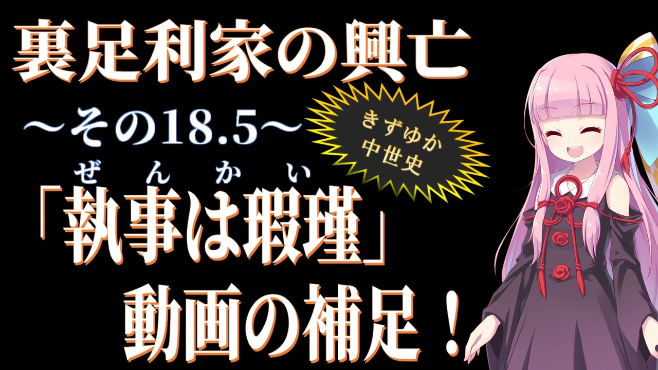 八十八(やそや)です。<br>前回動画で充分伝えきれなかった事の吐き出し回です。従来の学説や通説から少し踏み込んだ考察を含みます。<br><br><br><br>【きずゆか中世史:裏足利家の興亡】<br>前:⑱ 執事は家の瑕瑾! <a href="https://www.nicovideo.jp/watch/sm40121472" class="watch">sm40121472</a><br>次:<br><br>ツイッター:<a href="https://twitter.com/yasoya_night" target="_blank" rel="noopener nofollow">https://twitter.com/yasoya_night</a><br><br>参考資料(著者敬称略)<br>WikiPedia「斯波高経」他の記事<br>足利一門守護発展史の研究:小川信<br>佐々木導誉:森茂暁<br>南北朝武将列伝 北朝編・南朝編:亀田俊和・生駒孝臣・杉山一弥<br>室町幕府 全将軍・管領列伝:平野明夫・日本史史料研究会<br>国別 守護・戦国大名辞典:西ヶ谷恭弘<br><br>