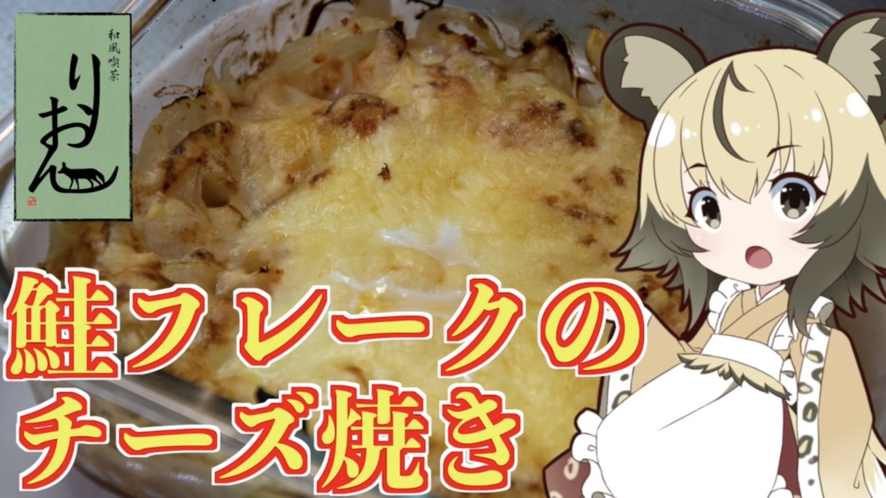 今回は鮭フレークを使ってメインにもなる一品<br>「鮭フレークのチーズ焼き」を作っていきましょう。<br><br>お家なら、トースターやオーブン、グリルでもできますし、<br>外ならスキレットで食べてもいいかもしれませんね。<br><br>■材料<br>・鮭フレーク お好みの量<br> (ほぐした焼き鮭でも可)<br>・玉ねぎ 1個<br>・マヨネーズ お好みの量<br>・チーズ 好きなだけ<br>・卵 1個<br><br>■所要時間<br>作業時間:15分<br><br>youtube:<a href="https://youtu.be/hjSAEQhcOg8" target="_blank" rel="noopener nofollow">https://youtu.be/hjSAEQhcOg8</a><br />twitter:@lycaon_kitchen<br><br>りおんの和風喫茶:<a href="https://www.nicovideo.jp/series/77190" target="_blank" rel="noopener">series/77190</a><br>おつかれごはん:<a href="https://www.nicovideo.jp/series/155690" target="_blank" rel="noopener">series/155690</a><br>手作り和菓子でちょっとひとやすみしませんか?:<a href="https://www.nicovideo.jp/series/155691" target="_blank" rel="noopener">series/155691</a><br><br><span style="color: rgba(0, 0, 0, 0.87);">立ち絵:</span>星華 彩二魔 様<br><span style="color: rgba(0, 0, 0, 0.87);">イラスト:いらすとや、AWD kitchen<br>音源:DOVA-SYNDROME、ポケットサウンド<br>音声:VOICEROID2 </span>紲星あかり、東北イタコ + exVOICE