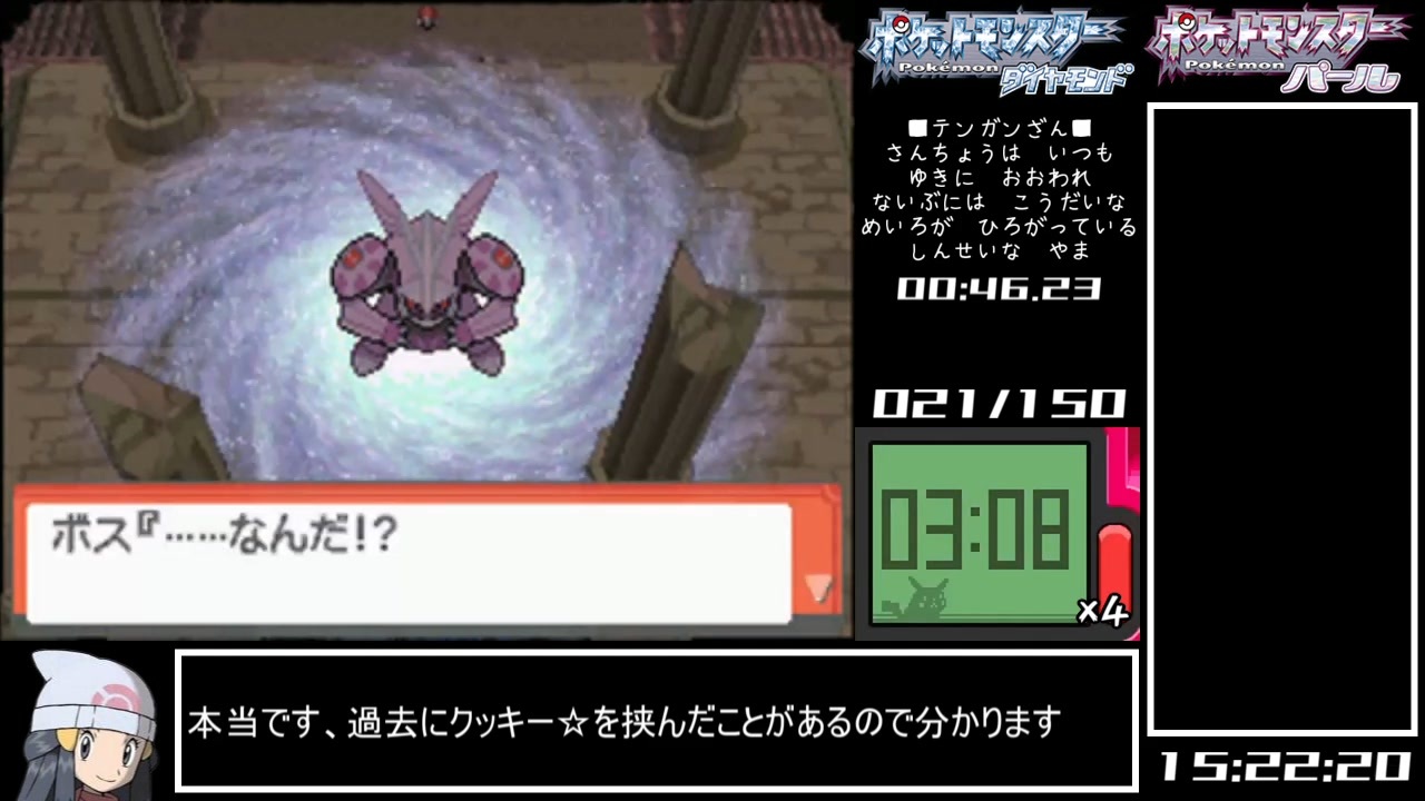 遂にアルセウスが尺の半分以上取るようになってしまったので、次回は自戒します(激うまギャグ)<br><br>レギュレーション<br>・ダイヤモンド・パールのみ使用可能(プラチナ・HGSSは禁止)<br>・乱数調整・バグは禁止<br>・使用ロムはすべて「はじめから」<br>・ロムの使用個数に制限なし<br>・計測開始点はタイトル画面でスタート直後<br>・計測終了点はポケモン図鑑が埋まったのを確認し終えたら<br><br>その他注意事項<br>・参考記録(85時間の記録をそのまま投稿できるサイトがないため)<br>・録画環境の都合上、基本1ロムのみ動かします<br><br>part1→<a href="https://www.nicovideo.jp/watch/sm39792200" class="watch">sm39792200</a><br>次→下にあるシリーズからよろしく<br>これのマイリス→<a href="https://www.nicovideo.jp/mylist/72359088" target="_blank" rel="noopener">mylist/72359088</a><br><br>無編集前編→<a href="https://www.twitch.tv/videos/1227891406" target="_blank" rel="noopener nofollow">https://www.twitch.tv/videos/1227891406</a><br>無編集後編→<a href="https://www.twitch.tv/videos/1227891844" target="_blank" rel="noopener nofollow">https://www.twitch.tv/videos/1227891844</a><br><br>うp動画まとめ→<a href="https://www.nicovideo.jp/mylist/71230916" target="_blank" rel="noopener">mylist/71230916</a><br><br>キッサキジム~ギンガ団アジトまで<br><br>※この動画の一部または全部を外部サイト等へ転載することを禁じます。<br> 動画紹介等で動画の一部を引用するのは構いません。