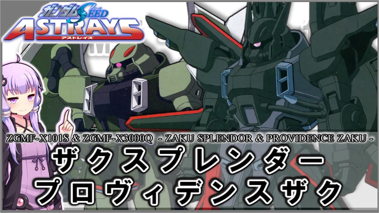 沢山のコメントやマイリス、フォロー、広告ありがとうございます。<br>励みにさせて頂いています。<br><br>-----注意事項------<br>・作品のネタばれが多分に含まれる場合があります。<br>・誤字脱字、間違いなどある場合があります。<br>・調べて動画を作成していますが、この動画の情報が必ず正しいというわけではありません。<br> ですので、ガンダム好きが早口で何か言っているくらいの認識での視聴をお勧めします。<br><br>次:ノクティルーカ ザクウォーリア&ホスピタル ザクウォーリア&コマンドザクCCI ⇒<a href="https://www.nicovideo.jp/watch/sm40166872" class="watch">sm40166872</a><br>前:ZGMF-X999A ザク量産試作型 ⇒<a href="https://www.nicovideo.jp/watch/sm40136531" class="watch">sm40136531</a><br>【機動戦士ガンダムSEED ASTRAY】外伝機体の解説 ⇒<a href="https://www.nicovideo.jp/mylist/71039433" target="_blank" rel="noopener">mylist/71039433</a><br><br>※以前の動画<br>【新機動戦記ガンダムW】TV版の機体解説 ➪<a href="https://www.nicovideo.jp/mylist/70337944" target="_blank" rel="noopener">mylist/70337944</a><br>【新機動戦記ガンダムW】アニメ以外の作品解説 ➪<a href="https://www.nicovideo.jp/mylist/69631278" target="_blank" rel="noopener">mylist/69631278</a><br>【新機動戦記ガンダムW】Endless Waltz 敗者たちの栄光の解説 ⇒<a href="https://www.nicovideo.jp/mylist/68922905" target="_blank" rel="noopener">mylist/68922905</a><br>【ガンダム00外伝MS解説】⇒<span style="color: #006699; font-size: 14px;"><a href="https://www.nicovideo.jp/mylist/66597479" target="_blank" rel="noopener">mylist/66597479</a></span>