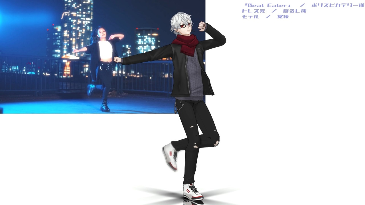 楽曲 「BEAT EATER」ポリスピカデリー様 <a href="https://www.nicovideo.jp/watch/sm39046046" class="watch">sm39046046</a><br>トレース元 ぽるし様 <a href="https://www.nicovideo.jp/watch/sm39705856" class="watch">sm39705856</a><br>モデル 覚式葛葉 <a href="https://www.nicovideo.jp/watch/sm36516617" class="watch">sm36516617</a><br><br>1番仮打ち進捗上げ<br><br><a href="https://bowlroll.net/file/273653" target="_blank" rel="noopener nofollow">https://bowlroll.net/file/273653</a><br>pass: 楽曲本家様→振付本家様の順で、動画番号をsm付きで続けて入力<br>キヤク : <a href="https://miyammd.blogspot.com/p/beat-eater1.html" target="_blank" rel="noopener nofollow">https://miyammd.blogspot.com/p/beat-eater1.html</a><br><br><span style="color: #000000; font-size: 13px;"><a href="https://www.nicovideo.jp/mylist/21109343" target="_blank" rel="noopener">mylist/21109343</a></span>