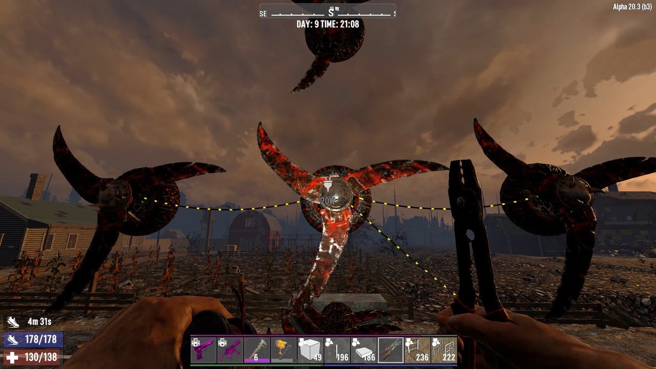 風車かな? <br><br>前提:死ぬな<br>禁止:クエキャン∞漁り+再起クエ厳選+キャットウォーク透明化+自販機利用コイン稼ぎ(今後増えるかも?)<br>目標:各トレーダーのクエティア5解放<br>最終:コンクリバイオーム<br><br>ナイトメア(常走)、インセイン(被ダメ250%、与ダメ50%、レイジ発生率50%)<br><span style="color: #ff0000;">一日30分</span>、昼12時間、シングルプレイ、ランダムマップ<br>プレイヤーブロック与ダメ<span style="color: #ff0000;">25%</span>、敵性ブロック与ダメ<span style="color: #ff0000;">300%</span><br><span style="color: #ff0000;">フェラルセンス常時</span>(ゾンビの感知力が2倍以上に上昇)<br>取得量25%、<span style="color: #ff0000;">取得Exp300%</span>、自然再設置off、死亡時全ロスト<br>ブラッドムーンホード7日毎 ブレoff 同時出現64体、空輸7日毎&印off<br><br><a href="https://www.nicovideo.jp/watch/sm39835583" class="watch">sm39835583</a>←始 <a href="https://www.nicovideo.jp/mylist/72372342" target="_blank" rel="noopener">mylist/72372342</a> 投稿予定日:日(live)水<br><br>現行他動画→Raft <a href="https://www.nicovideo.jp/watch/sm39562039" class="watch">sm39562039</a><br>他動画→<a href="https://www.nicovideo.jp/mylist/50733328" target="_blank" rel="noopener">mylist/50733328</a> コミュ+連絡場所→co5456168<br>ツベ→<a href="https://www.youtube.com/channel/UCLeG6t9v-BVQSfKFXo9cuOA/playlists" target="_blank" rel="noopener nofollow">https://www.youtube.com/channel/UCLeG6t9v-BVQSfKFXo9cuOA/playlists</a><br><br>ダイマ→<a href="http://7daystodie.com//" target="_blank" rel="noopener nofollow">http://7daystodie.com//</a>