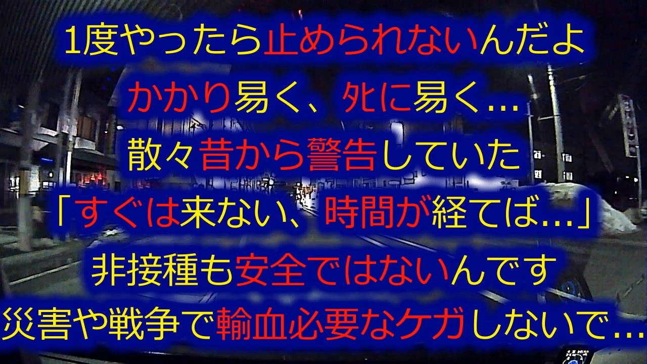 ロシア、ウクライナで連日賑わっているバカTVですが着実に3回目は進んでいますね<br>知人も最近突如として視力を失う事態に見舞われています...<br>職域接種では同調圧力と戦っている者もいます...<br>選ぶ権利は自由だし任意です、これは憲法違反じゃないでしょうか?すっかり忘れてますね。<br>問題はこれから何が起きるか分かりませんが、大災害や戦争に巻き込まれ負傷や病気になった時の<br>輸血が問題になるでしょう...ゼッタイにこれは問題になりますよ!そしてゼッタイにこの問題は取り上げられないでしょうね。