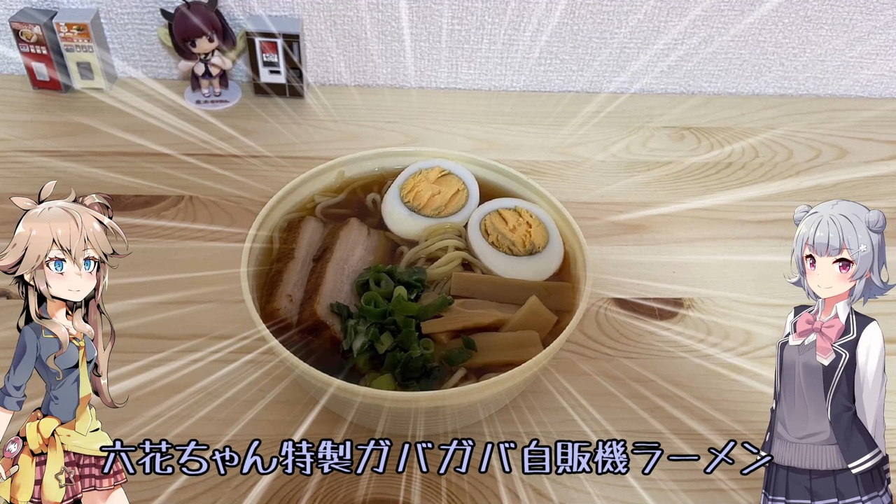 ボイロ系動画は初投稿です。<br>自販機ラーメンっぽいものを作りました。<br>器は2020年閉店した「鉄剣タロー」で使用されていたもので、<br>東行田駅近くのおもちゃ屋さん「ロケットトイズ」にて購入しました。<br><br>立ち絵<br>小春六花<br>blueberryさま_im10713178<br>春日部つむぎ<br>青トキエさま_im10845935<br><br>BGM<br>bee and puppycat<br>ほのぼの黄金伝説.mp114415 <a href="https://www.nicovideo.jp/watch/sm24294247" class="watch">sm24294247</a><br>3分クッキング神社 <a href="https://www.nicovideo.jp/watch/sm26089865" class="watch">sm26089865</a><br>チップチューン音楽素材集YUMEKAWA びーみゅ <a href="https://www.dlsite.com/home/work/=/product_id/RJ335123.html" target="_blank" rel="noopener nofollow">https://www.dlsite.com/home/work/=/product_id/RJ335123.html</a><br><br>合成音声<br>VOICEVOX:春日部つむぎ<br><a href="https://voicevox.hiroshiba.jp/" target="_blank" rel="noopener nofollow">https://voicevox.hiroshiba.jp/</a>