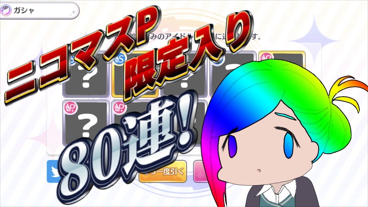 ニコマスP総勢<span style="color: #ff0000; font-size: 18px;"><strong>32名</strong></span>で制作しました~。<br><strong>10秒以下</strong>のニコマス動画がシャニマスのガシャ演出で次々に登場する、<span style="color: #674ea7; font-size: 18px;"><strong>限定入り</strong></span>ガシャですよ~♪<br><span style="color: #ff0000; font-size: 18px;"><strong>80連</strong></span>回します!何が出るかわからないドキドキとワクワクを、約15分間お楽しみくださいね~。<br><br>セトリ、登場アイドル、参加者の確認は以下のリンクからご覧ください。<a href="https://docs.google.com/spreadsheets/d/1-O-c9CyvfPnVCtQkGEPi0W4Fq0dS77u0SH06UsLpbvo/edit?usp=sharing" target="_blank" rel="noopener nofollow">https://docs.google.com/spreadsheets/d/1-O-c9CyvfPnVCtQkGEPi0W4Fq0dS77u0SH06UsLpbvo/edit?usp=sharing</a><br><br>運営<br>みおはす(<a href="https://www.nicovideo.jp/user/1865161" target="_blank" rel="noopener">user/1865161</a>)<br>sakuya<br>ますたー。/繰り上げP(<a href="https://www.nicovideo.jp/user/18622826" target="_blank" rel="noopener">user/18622826</a>)<br>しょーりんP(<a href="https://www.nicovideo.jp/user/88293994" target="_blank" rel="noopener">user/88293994</a>)<br><br>サムネ<br>まるきゅー(<a href="https://www.nicovideo.jp/user/35798121" target="_blank" rel="noopener">user/35798121</a>)