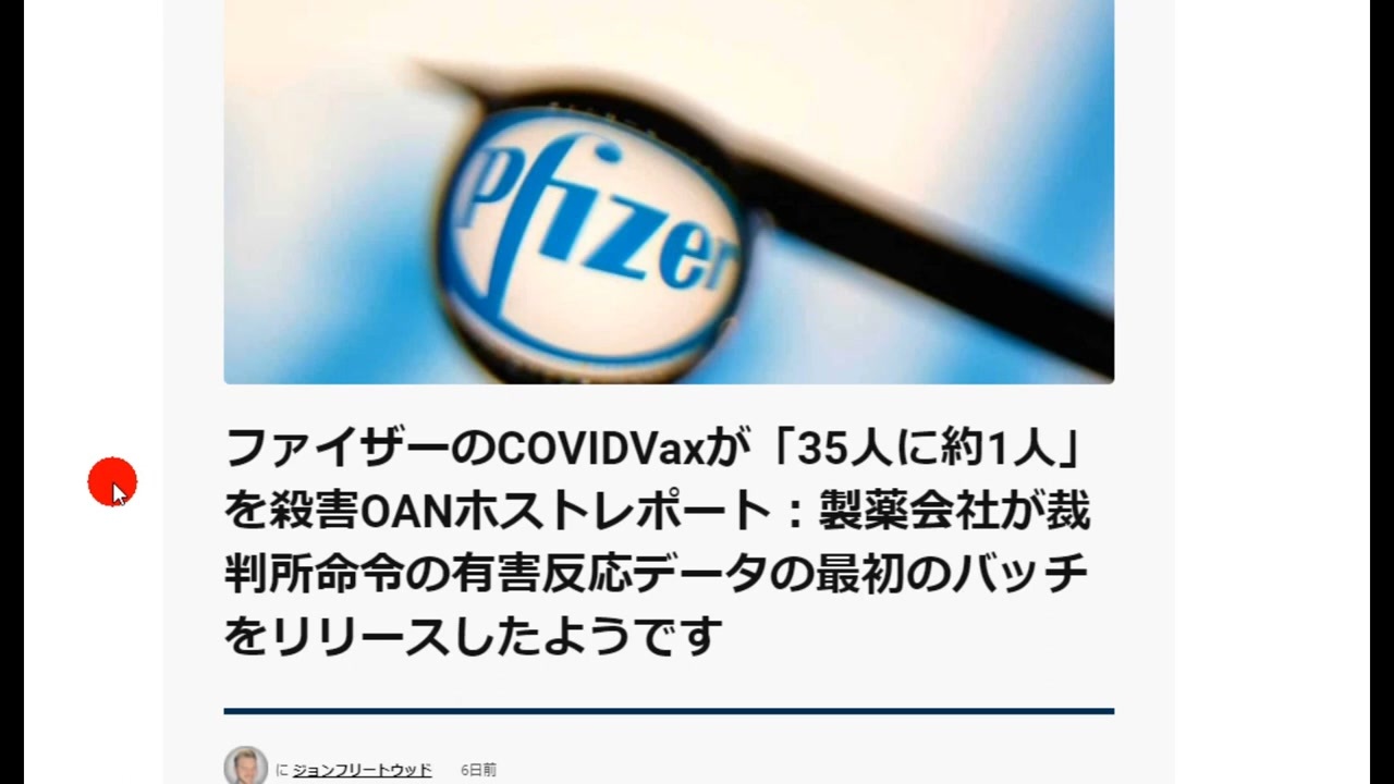 ニューヨーク Now!チャンネルより<a href="https://www.youtube.com/channel/UCvJJKqrc64IqeRnZTV2Qeqw/featured" target="_blank" rel="noopener nofollow">https://www.youtube.com/channel/UCvJJKqrc64IqeRnZTV2Qeqw/featured</a><br><br>記事<a href="https://americanfaith.com/pfizer-covid-vax-kills-roughly-1-in-35-people-oan-host-reports-pharma-company-reportedly-releases-first-batch-of-court-ordered-adverse-reaction-data/" target="_blank" rel="noopener nofollow">https://americanfaith.com/pfizer-covid-vax-kills-roughly-1-in-35-people-oan-host-reports-pharma-company-reportedly-releases-first-batch-of-court-ordered-adverse-reaction-data/</a>