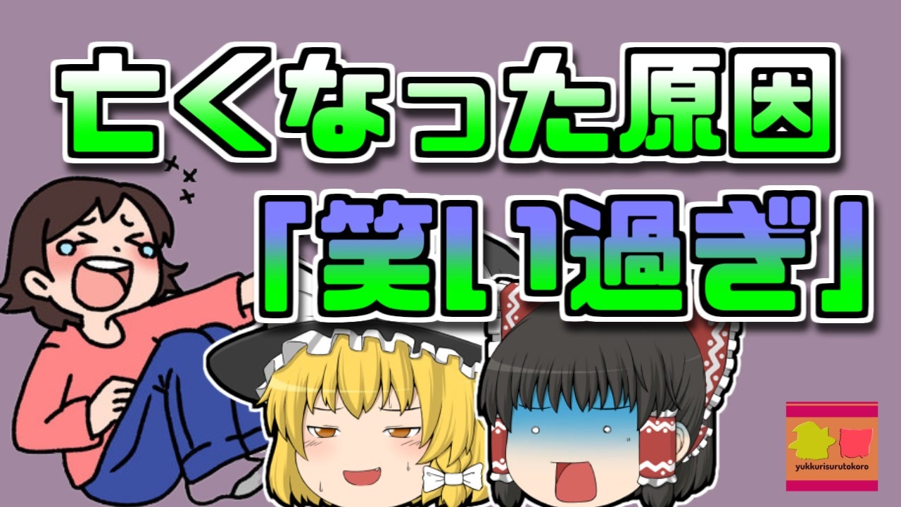 #ゆっくりするところ #イギリス #お笑い<br>今回紹介するのは、以前からリクエストを頂いていました「笑い過ぎ」に関する事例です。<br>イングランド東北部に位置する都市「キングス・リン」に暮らす男性「Aさん」はこの日、夕食を食べたあと、大好きなお笑い番組を、妻の「Bさん」と一緒にみていました。<br>彼は大のお笑い好きで、欠かさずこの番組を視聴していました。<br>それに、彼は所謂「笑い上戸」であり、他人が少し躓いただけでも、しばらく笑い転げてしまうほど、笑い好きな人でした。<br>番組が始まってすぐ、案の定笑い始めた彼でしたが、それは番組が終了した後まで続き、なんとその後30分も彼は笑い転げ続けました。<br>そのせいで、彼の心臓は大きな負担を受け、心不全を起こしてしまい、Aさんはこの世を去ってしまいました。<br><br>引用:出展:参考資料<br>日本成人病予防協会<br>ishort.ink/VpPs<br>名古屋ハートセンター<br>ishort.ink/uu7b<br>Wikipedia<br>ishort.ink/i299<br>その他視聴者提供資料など<br><br><br />※この動画は過去の事件を知り、現在でも同じことが発生する危険性を再認識、関与しないように促すための動画であり、視聴者を扇動、動揺を誘うためのコンテンツではありません。<br><br>ご要望にお応えして、メンバーシップの開設を行いました。<br>下記URLからも登録可能ですので、ご興味がある方は是非ご参加ください。<br><a href="https://www.youtube.com/channel/UCcT5a1J7XJW7CLYI2RKl4pw/join" target="_blank" rel="noopener nofollow">https://www.youtube.com/channel/UCcT5a1J7XJW7CLYI2RKl4pw/join</a><br><br><br>Twitter<br>→<a href="https://twitter.com/yukkurisurutoko" target="_blank" rel="noopener nofollow">https://twitter.com/yukkurisurutoko</a><br><br>取り急ぎ、簡易的にですがマイリストを作りました。<br>【ゆっくり解説】事故・事件関係紹介リスト <br><a href="https://www.nicovideo.jp/mylist/71034319" target="_blank" rel="noopener nofollow">https://www.nicovideo.jp/mylist/71034319</a><br>【ゆっくり解説】放射線系事故<br><a href="https://www.nicovideo.jp/mylist/71034368" target="_blank" rel="noopener nofollow">https://www.nicovideo.jp/mylist/71034368</a><br>【ゆっくり解説】鉄道系事故・事件関連<br><a href="https://www.nicovideo.jp/mylist/71034379" target="_blank" rel="noopener nofollow">https://www.nicovideo.jp/mylist/71034379</a>