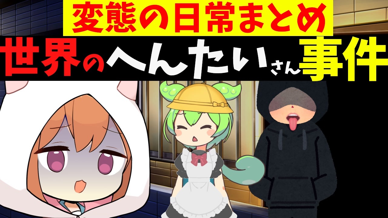 海外には私たちが想像もできない変態さんがいます。今回は4人のある意味怖い変態さんをご紹介します。海外の反応まとめも併せてご紹介。<br><br><span style="font-size: 18px;"><strong>最新話:変な思考さん<br><a href="https://www.nicovideo.jp/watch/sm40334751" class="watch">sm40334751</a></strong></span><br><br>【コメントのお返し】<br>→真ん中見ればいいの<br>大体真ん中見てたら内容分かるのよ<br><br>【ギフト、広告、いいね、コメントしてくださった皆様へ】<br>ありがとうございます。大変な時もありますが、<br>面白い動画なるべく早く作りたいと思います<br><br><br><br>【使用素材】<br>空想曲線 <a href="https://kopacurve.blog.fc2.com/" target="_blank" rel="noopener nofollow">https://kopacurve.blog.fc2.com/</a><br><br>【使用BGM・効果音】<br>◆DOVA-SYNDROME<br><a href="http://dova-s.jp/" target="_blank" rel="noopener nofollow">http://dova-s.jp/</a><br>◆MusMus<br><a href="https://musmus.main.jp/info.html" target="_blank" rel="noopener nofollow">https://musmus.main.jp/info.html</a><br>◆効果音ラボ<br><a href="https://soundeffect-lab.info/" target="_blank" rel="noopener nofollow">https://soundeffect-lab.info/</a><br>◆効果音:ポケットサウンド –<br>ボ色Ckcmg8yBpJk5I1fwu0sabJg<br>◆創作堂さくら紅葉<br><a href="https://yukizakura.net/" target="_blank" rel="noopener nofollow">https://yukizakura.net/</a><br>