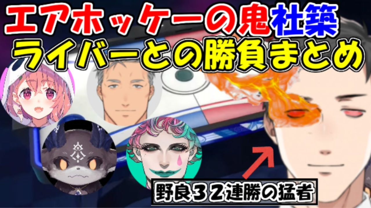 やはりやしきずは悲しきエアホッケーマシンだった…<br><br>【元動画】<br>【70万人記念凸待ち】来てくれた人とアソビ大全で1発ガチ勝負!【にじさんじ/笹木咲】<br><a href="https://www.youtube.com/watch?v=q1Z6c1SfagU&t=1537s" target="_blank" rel="noopener nofollow">https://www.youtube.com/watch?v=q1Z6c1SfagU&t=1537s</a><br><br><br>【世界のアソビ大全51】歯車ボコボコにしたる【でびでび・でびる/社築】<br><a href="https://www.youtube.com/watch?v=0hWpQhPBJws&t=2541s" target="_blank" rel="noopener nofollow">https://www.youtube.com/watch?v=0hWpQhPBJws&t=2541s</a><br><br>【世界のアソビ大全51】舞元力一vs社チャイカ アソビなきガチバトル【にじさんじ】<br><a href="https://www.youtube.com/watch?v=Dgp_JvFoLLY&t=2977s" target="_blank" rel="noopener nofollow">https://www.youtube.com/watch?v=Dgp_JvFoLLY&t=2977s</a><br><br><br>【youtube版】<br><a href="https://youtu.be/kLKOhCICoi4" target="_blank" rel="noopener nofollow">https://youtu.be/kLKOhCICoi4</a>