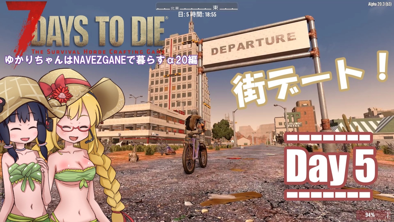 ゆかりちゃんとマキちゃんの2人でお送りする、NAVEZGANE1周旅行が目的の動画です。<br>5日目は砂漠の街でデート!&名物観光地「大峡谷と西部の町並み」を満喫です。<br><br>※ゲーム設定は基本デフォルト。以下の設定だけ変更しています。<br> 1日の時間90分、経験値200%、ホード64体<br><br>・今回はデート回ですので若干朝食が重めとなっております。<br><br>!ボイロ&動画内容の調整・更新点報告!<br>・糖分増量キャンペーン中<br>・会話の間を調整<br>・掛け声系の字幕色を変更<br>・マキの「マキマキ」「ぬいぬい」を追加。<br>・ゆかりEXvoiceの活用方法を試行錯誤中<br>・英語発音の仕方を調整。<br>・エンドロールを50音順に並び替えしました。<br><br>各編パート1はこちら<br>α18編さいしょ <a href="https://www.nicovideo.jp/watch/sm36721764" class="watch">sm36721764</a><br>α19編さいしょ <a href="https://www.nicovideo.jp/watch/sm37504239" class="watch">sm37504239</a><br><br>※使用させていただいた楽曲・素材はコンテンツツリーにまとめております。<br> また広告者様や使用した素材は動画の最後にてご紹介させていただきます。<br><br><a href="https://www.nicovideo.jp/watch/sm40174173" class="watch">sm40174173</a> ←前 <a href="https://www.nicovideo.jp/mylist/68780685" target="_blank" rel="noopener">mylist/68780685</a> 次→ <a href="https://www.nicovideo.jp/watch/sm40255132" class="watch">sm40255132</a><br /><br>素敵な支援絵を頂いております。感謝感謝。<br>まとめたのはこちら→ <a href="https://seiga.nicovideo.jp/clip/2924274" target="_blank" rel="noopener">clip/2924274</a>