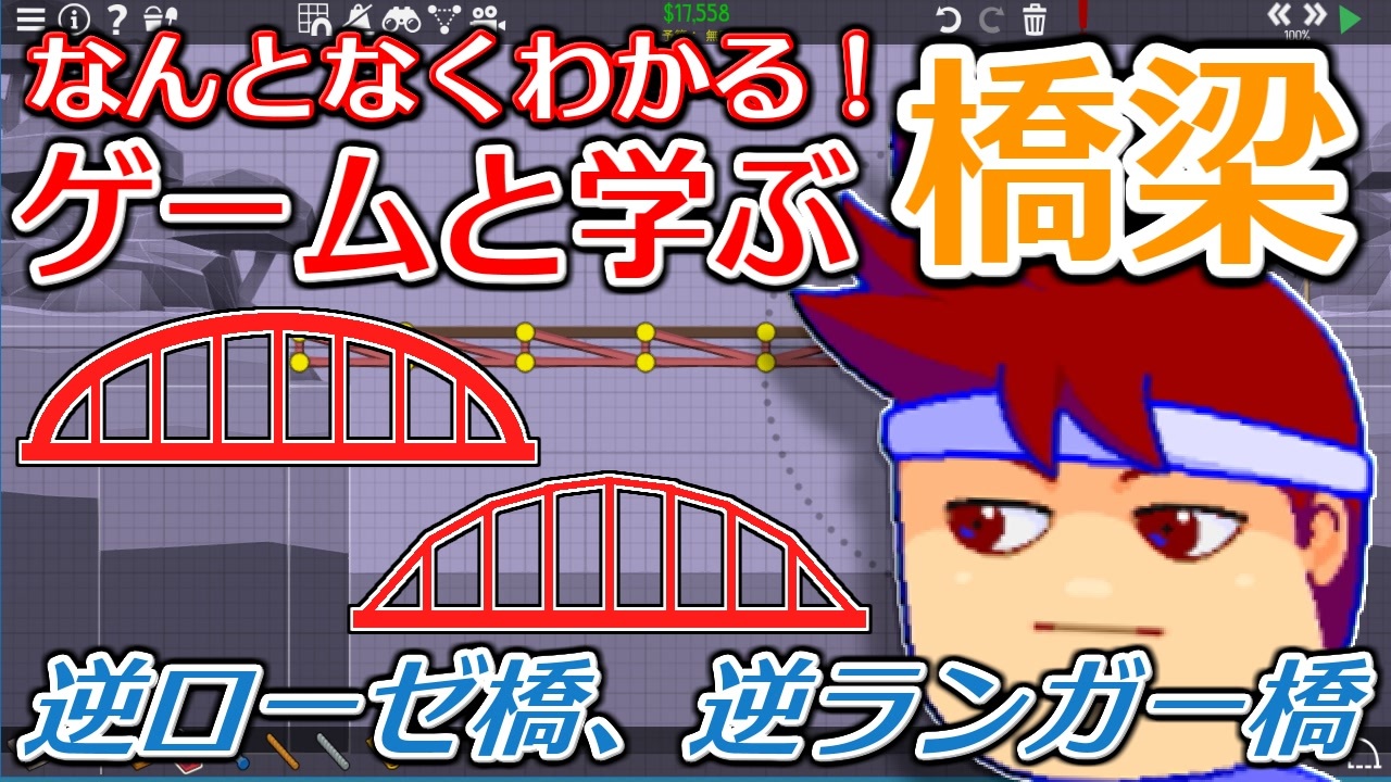 【合わせて見たい】<br>アーチ橋、ローゼ橋について<br><a href="https://www.youtube.com/watch?v=jiknGRWriwc" target="_blank" rel="noopener nofollow">https://www.youtube.com/watch?v=jiknGRWriwc</a><br><br>上路式、下路式について<br><a href="https://www.youtube.com/watch?v=xe8xODxMYPE" target="_blank" rel="noopener nofollow">https://www.youtube.com/watch?v=xe8xODxMYPE</a><br><br>【参考文献】<br>九州産業大学「橋梁の種類と特徴について学ぶ!」<br><a href="http://www.ip.kyusan-u.ac.jp/J/kougaku/td/Yoshimura/bridge-c/bridge-c01.htm" target="_blank" rel="noopener nofollow">http://www.ip.kyusan-u.ac.jp/J/kougaku/td/Yoshimura/bridge-c/bridge-c01.htm</a><br>株式会社 長野技研「その1 橋梁の構造と種類について」<br><a href="https://www.naganogiken.co.jp/knowledge00/knowledge1/" target="_blank" rel="noopener nofollow">https://www.naganogiken.co.jp/knowledge00/knowledge1/</a><br>土木のこれからを考える「アーチ橋とは?-橋梁の種類その1」<br><a href="https://bonperson-civil.com/bridge1-arch/" target="_blank" rel="noopener nofollow">https://bonperson-civil.com/bridge1-arch/</a><br><br><br /><br>◆◇◆◇<br>バーチャルいいゲーマー : <a href="https://www.nicovideo.jp/series/169043" target="_blank" rel="noopener">series/169043</a><br>バーチャルいいゲーマー2: <a href="https://www.nicovideo.jp/series/354647" target="_blank" rel="noopener">series/354647</a><br>バーチャルいいゲーマー3: <a href="https://www.nicovideo.jp/series/456136" target="_blank" rel="noopener">series/456136</a><br>バーチャルいいゲーマー4: <a href="https://www.nicovideo.jp/series/519895" target="_blank" rel="noopener">series/519895</a><br>バーチャルいいゲーマー5: <a href="https://www.nicovideo.jp/series/535323" target="_blank" rel="noopener">series/535323</a><br><br>いい道 : <a href="https://www.nicovideo.jp/series/34469" target="_blank" rel="noopener">series/34469</a><br>RTA動画パート1集 : <a href="https://www.nicovideo.jp/mylist/53648285" target="_blank" rel="noopener">mylist/53648285</a><br>◆◇◆◇<br><br><span style="color: #ff0000; font-size: 16px;"><strong>生放送(毎日19:10~)<br>今シーズンは……「ダンガンロンパ」ほかをプレイ中……。</strong></span><br><span style="color: #ff0000; font-size: 18px;"><strong>⇒ <a href="https://www.twitch.tv/usui_iigame" target="_blank" rel="noopener nofollow">https://www.twitch.tv/usui_iigame</a></strong></span><br><br><strong>★FanBox ⇒ <a href="https://usui-iigame.fanbox.cc/" target="_blank" rel="noopener nofollow">https://usui-iigame.fanbox.cc/</a></strong><br><br><span style="font-size: 10px;">Twitter(フォローしてね) ⇒ <a href="https://twitter.com/usui_iigame" target="_blank" rel="noopener nofollow">https://twitter.com/usui_iigame</a><br>Youtube(毎日19:00~世界最速プレミア配信)⇒ <a href="https://www.youtube.com/channel/UCyEph50XfHDSig0umxV4_lQ" target="_blank" rel="noopener nofollow">https://www.youtube.com/channel/UCyEph50XfHDSig0umxV4_lQ</a><br>攻略Wiki(非公式) ⇒ <a href="https://seesaawiki.jp/virtual-ii-gamer/" target="_blank" rel="noopener nofollow">https://seesaawiki.jp/virtual-ii-gamer/</a></span>