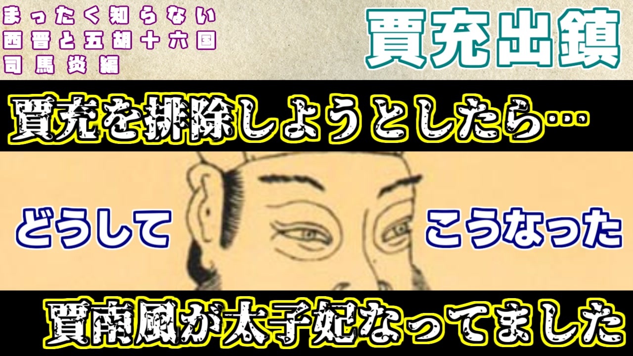 <span style="font-size: 24px;">賈充、都督になるってよ</span><br><br>今回は賈南風が嫁ぐきっかけになった話を深掘り…<br>こんな話にも司馬炎と司馬攸の兄弟関係が影響しちゃってます<br>賈充の権勢を抑えようとしたら、賈南風が太子の妃になっていたという<br>世にも不思議な話です<br><br><br>…ということで次回は司馬駿が反撃します<br><br><br>【お品書き】<br><a href="#" class="seekTime" data-seekTime="0:00" onclick="seekNicoPlayer('#0:00'); return false;">#0:00</a> 前書き<br><a href="#" class="seekTime" data-seekTime="0:48" onclick="seekNicoPlayer('#0:48'); return false;">#0:48</a> ちょっと説明<br><a href="#" class="seekTime" data-seekTime="1:45" onclick="seekNicoPlayer('#1:45'); return false;">#1:45</a> 賈充出鎮の詔<br><a href="#" class="seekTime" data-seekTime="4:52" onclick="seekNicoPlayer('#4:52'); return false;">#4:52</a> 視点1:賈充出鎮の必要性<br><a href="#" class="seekTime" data-seekTime="6:37" onclick="seekNicoPlayer('#6:37'); return false;">#6:37</a> 視点2:賈充出鎮は誰の意向?<br><a href="#" class="seekTime" data-seekTime="10:36" onclick="seekNicoPlayer('#10:36'); return false;">#10:36</a> “とある”人物と賈充の共通点<br><a href="#" class="seekTime" data-seekTime="12:52" onclick="seekNicoPlayer('#12:52'); return false;">#12:52</a> 視点3:劉蒼と姿がダブる司馬攸<br><a href="#" class="seekTime" data-seekTime="16:02" onclick="seekNicoPlayer('#16:02'); return false;">#16:02</a> 賈充出鎮について<br><a href="#" class="seekTime" data-seekTime="17:59" onclick="seekNicoPlayer('#17:59'); return false;">#17:59</a> あとがき・コメ返し<br><br><br><br><br><br><br>【第6回】<a href="https://www.nicovideo.jp/watch/sm40084180" class="watch">sm40084180</a> 【次回】<a href="https://www.nicovideo.jp/watch/sm40387726" class="watch">sm40387726</a><br><br>【司馬懿編(初回)はコチラ】<a href="https://www.nicovideo.jp/watch/sm36990322" class="watch">sm36990322</a><br>【司馬師編(初回)はコチラ】<a href="https://www.nicovideo.jp/watch/sm37497385" class="watch">sm37497385</a><br>【司馬昭編(初回)はコチラ】<a href="https://www.nicovideo.jp/watch/sm37739249" class="watch">sm37739249</a><br>【司馬炎編(初回)はコチラ】<a href="https://www.nicovideo.jp/watch/sm39368727" class="watch">sm39368727</a><br><br>