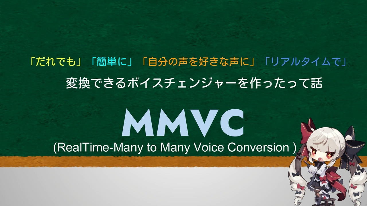 無料で使えるAIを使ったリアルタイムボイスチェンジャーを作ったぞ<br>みんな使ってくれよな!!<br><br>ダウンロードはこちらから<br><a href="https://github.com/isletennos/MMVC_Trainer.git" target="_blank" rel="noopener nofollow">https://github.com/isletennos/MMVC_Trainer.git</a><br><a href="https://github.com/isletennos/MMVC_Client.git" target="_blank" rel="noopener nofollow">https://github.com/isletennos/MMVC_Client.git</a><br><br>わからないことは何でも聞いてくれよな!<br>遊戯王のこと以外でな!!<br>みんなの質問がMMVCがさらに進化させるのだ。<br><br>========== 1.元音声、2.変換後の音声、3.遅延込みで同時録音した音声のデモ ========== <br><span style="color: #ff0000; font-size: 18px;"><strong>追加しました!</strong></span><br><a href="https://docs.google.com/presentation/d/1BmP11WfXNRdUA1vYxO7wG6l0t1oMDccDvAgIz2Rbrh0/edit?usp=sharing" target="_blank" rel="noopener nofollow">https://docs.google.com/presentation/d/1BmP11WfXNRdUA1vYxO7wG6l0t1oMDccDvAgIz2Rbrh0/edit?usp=sharing</a><br>(ソフトウェア上では299msの遅延ですが、実際に録音してみると600ms近い遅延が…)<br>========== 質問&ナレッジ用コミュニティサーバ(discord) ========== <br><a href="https://discord.gg/4A4Q4cv2Vw" target="_blank" rel="noopener nofollow">https://discord.gg/4A4Q4cv2Vw</a><br><br>========== 開発者 ========== <br>天王洲アイル<br>・Twitter<br><a href="https://twitter.com/IsleTennos" target="_blank" rel="noopener nofollow">https://twitter.com/IsleTennos</a><br>・Fanbox<br>天王洲アイル|pixivFANBOX<br><a href="https://isle.fanbox.cc/" target="_blank" rel="noopener nofollow">https://isle.fanbox.cc/</a><br><br>========== 前回の動画 ========== <br>遅延時間約0.32秒のリアルタイムボイスチェンジャーを作ってみた : <a href="https://www.nicovideo.jp/watch/sm40189392" class="watch">sm40189392</a><br><br>========== おまけ ========== <br>下記の技術のと組み合わされば・・・?<br>一枚の画像で表情豊かなVTuberになれるシステムを作ってみた : <a href="https://www.nicovideo.jp/watch/sm38211856" class="watch">sm38211856</a><br><br>========== Special thanks!! ========== <br>illustrator:凪瀬ロロ<br>音声提供:犬塚わんこ様<br>twitter:<a href="https://mobile.twitter.com/wanko_inuzuka" target="_blank" rel="noopener nofollow">https://mobile.twitter.com/wanko_inuzuka</a><br>YouTube : <a href="https://m.youtube.com/channel/UCgRe5eq4h30AAqKwLINFX8Q" target="_blank" rel="noopener nofollow">https://m.youtube.com/channel/UCgRe5eq4h30AAqKwLINFX8Q</a><br>
