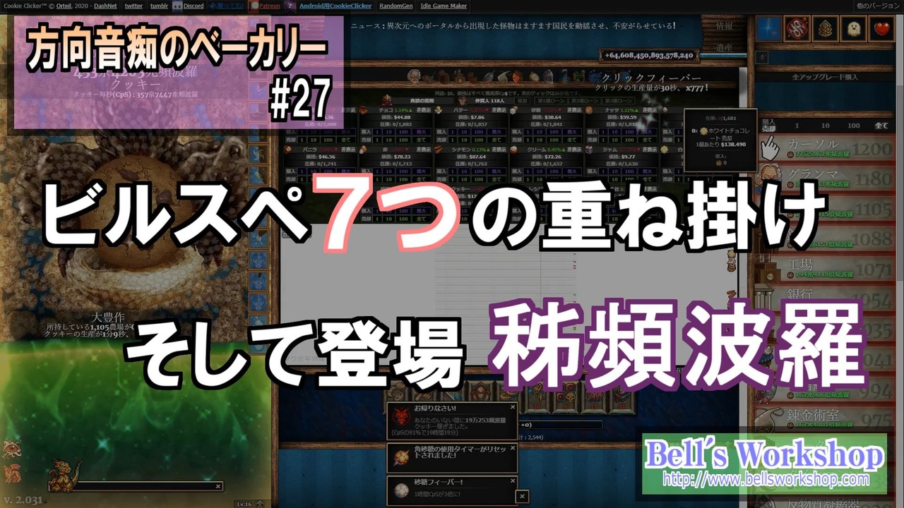 ビルスペ7つの重ね掛け。もう結構限界に近いです。<br><br>前:<a href="https://www.nicovideo.jp/watch/sm39952212" class="watch">sm39952212</a> 次:<a href="https://www.nicovideo.jp/watch/sm40877887" class="watch">sm40877887</a> マイリスト:<a href="https://www.nicovideo.jp/mylist/70729379" target="_blank" rel="noopener">mylist/70729379</a><br>※Part27裏話:<a href="http://bellsworkshop.com/cookie-part27/" target="_blank" rel="noopener nofollow">http://bellsworkshop.com/cookie-part27/</a><br><br>ブログ<br><a href="http://www.bellsworkshop.com/" target="_blank" rel="noopener nofollow">http://www.bellsworkshop.com/</a><br><br>Youtubeチャンネル<br><a href="http://www.youtube.com/user/bellsworkshop2" target="_blank" rel="noopener nofollow">http://www.youtube.com/user/bellsworkshop2</a><br><br>Music:purple planet royalty free music <a href="http://www.purple-planet.com/" target="_blank" rel="noopener nofollow">http://www.purple-planet.com/</a><br>Sound:On-Jin ~音人~ <a href="http://on-jin.com/" target="_blank" rel="noopener nofollow">http://on-jin.com/</a><br>