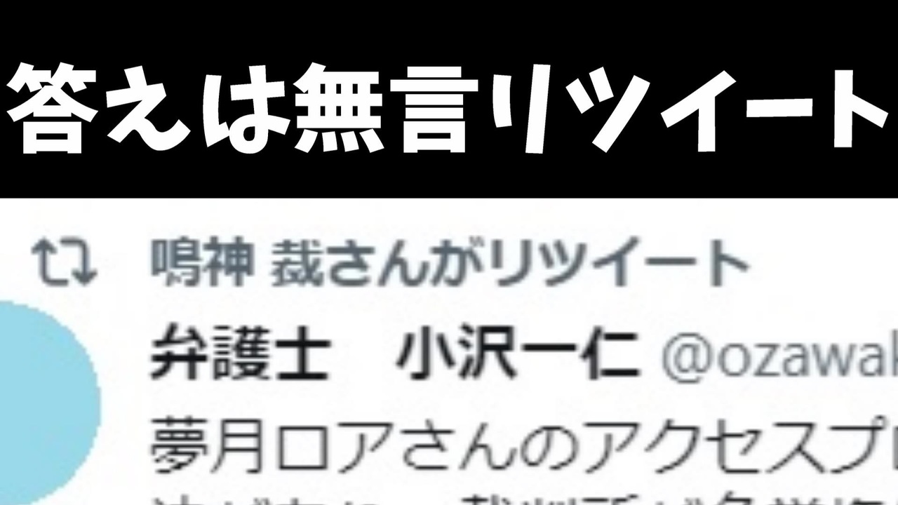 2022年3月28日、インテグラル法律事務所の小沢一仁弁護士が発信者情報開示請求訴訟に勝訴したことをツイッターにて報告、それを鳴神裁が無言でリツイートしました。<br><br>引用<br><a href="https://twitter.com/ozawakazuhito/status/1508368681184927746" target="_blank" rel="noopener nofollow">https://twitter.com/ozawakazuhito/status/1508368681184927746</a><br><a href="https://twitter.com/narukami_sabaki/status/1508121584237781006" target="_blank" rel="noopener nofollow">https://twitter.com/narukami_sabaki/status/1508121584237781006</a><br><br>読売新聞の記事<br>片親だから常識欠如・キャラが後輩いじめた…「Vチューバー」巡り中傷トラブル続々<br><a href="https://www.yomiuri.co.jp/national/20220325-OYT1T50222/" target="_blank" rel="noopener nofollow">https://www.yomiuri.co.jp/national/20220325-OYT1T50222/</a><br><br>今後の 製作予定動画<br>2022年4月~「バーチャルブッダより大切なお知らせ」<br>元にじさんじ運営幹部いわなが社長、新しい箱を立ち上げる<br>鳴神裁「にじさんじの野良猫俺のこと好きだよな?」<br>にじさんじ×DLsite ASMRコラボ5~6弾販売中止<br>【悲報】鳴神裁「裁判をすっ飛ばして逮捕はあり得ない」<br>にじさんじ引退者まとめPart.3<br>にじさんじとストーカー被害まとめ<br>【悲報】にじさんじライバー、一本満足バーを一度に二本食べてしまう<br><br>公開マイリスト<br>1 <a href="https://www.nicovideo.jp/mylist/66855587" target="_blank" rel="noopener nofollow">https://www.nicovideo.jp/mylist/66855587</a><br>2 <a href="https://www.nicovideo.jp/mylist/71980663" target="_blank" rel="noopener nofollow">https://www.nicovideo.jp/mylist/71980663</a><br>Youtube <a href="https://www.youtube.com/channel/UCzYQPx8MeE99DUkW9Y_txJw" target="_blank" rel="noopener nofollow">https://www.youtube.com/channel/UCzYQPx8MeE99DUkW9Y_txJw</a><br>twitter <a href="https://twitter.com/V_Virgin_Mary" target="_blank" rel="noopener nofollow">https://twitter.com/V_Virgin_Mary</a><br><br>使用素材<br>高品質なフリー動画素材 - Pixabay <a href="https://pixabay.com/ja/videos" target="_blank" rel="noopener nofollow">https://pixabay.com/ja/videos</a>