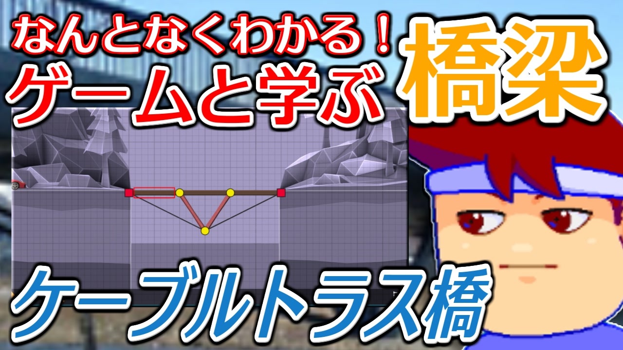 【合わせて見たい】<br>ケーブルイグレット橋<br><a href="https://www.youtube.com/watch?v=CHil-UTe_Zs" target="_blank" rel="noopener nofollow">https://www.youtube.com/watch?v=CHil-UTe_Zs</a><br><br>【参考文献】<br>ドーピー建設工業株式会社「大偏心外ケーブルトラス」<br><a href="https://www.dps.co.jp/?page_id=64" target="_blank" rel="noopener nofollow">https://www.dps.co.jp/?page_id=64</a><br><br>神戸製鋼「ケーブルトラスト橋の構造特性」<br><a href="https://www.kobelco.co.jp/technology-review/pdf/49_2/023-026.pdf" target="_blank" rel="noopener nofollow">https://www.kobelco.co.jp/technology-review/pdf/49_2/023-026.pdf</a><br><br><br><br /><br>◆◇◆◇<br>バーチャルいいゲーマー : <a href="https://www.nicovideo.jp/series/169043" target="_blank" rel="noopener">series/169043</a><br>バーチャルいいゲーマー2: <a href="https://www.nicovideo.jp/series/354647" target="_blank" rel="noopener">series/354647</a><br>バーチャルいいゲーマー3: <a href="https://www.nicovideo.jp/series/456136" target="_blank" rel="noopener">series/456136</a><br>バーチャルいいゲーマー4: <a href="https://www.nicovideo.jp/series/519895" target="_blank" rel="noopener">series/519895</a><br>バーチャルいいゲーマー5: <a href="https://www.nicovideo.jp/series/535323" target="_blank" rel="noopener">series/535323</a><br><br>いい道 : <a href="https://www.nicovideo.jp/series/34469" target="_blank" rel="noopener">series/34469</a><br>RTA動画パート1集 : <a href="https://www.nicovideo.jp/mylist/53648285" target="_blank" rel="noopener">mylist/53648285</a><br>◆◇◆◇<br><br><span style="color: #ff0000; font-size: 16px;"><strong>生放送(毎日19:10~)<br>今シーズンは……「ダンガンロンパ」ほかをプレイ中……。</strong></span><br><span style="color: #ff0000; font-size: 18px;"><strong>⇒ <a href="https://www.twitch.tv/usui_iigame" target="_blank" rel="noopener nofollow">https://www.twitch.tv/usui_iigame</a></strong></span><br><br><strong>★FanBox ⇒ <a href="https://usui-iigame.fanbox.cc/" target="_blank" rel="noopener nofollow">https://usui-iigame.fanbox.cc/</a></strong><br><br><span style="font-size: 10px;">Twitter(フォローしてね) ⇒ <a href="https://twitter.com/usui_iigame" target="_blank" rel="noopener nofollow">https://twitter.com/usui_iigame</a><br>Youtube(毎日19:00~世界最速プレミア配信)⇒ <a href="https://www.youtube.com/channel/UCyEph50XfHDSig0umxV4_lQ" target="_blank" rel="noopener nofollow">https://www.youtube.com/channel/UCyEph50XfHDSig0umxV4_lQ</a><br>攻略Wiki(非公式) ⇒ <a href="https://seesaawiki.jp/virtual-ii-gamer/" target="_blank" rel="noopener nofollow">https://seesaawiki.jp/virtual-ii-gamer/</a></span>