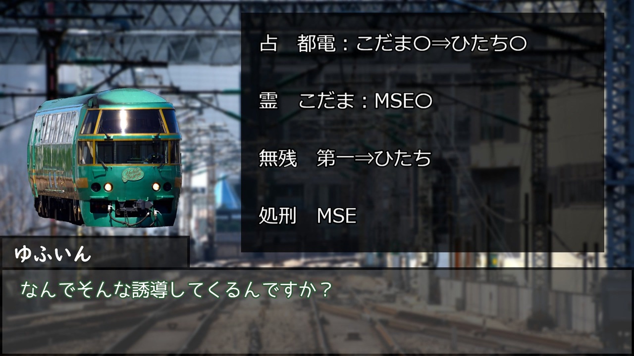 文字が見辛いとの声が多かったので、少し調整しみました。<br>どうでしょうか?<br><br>12B:村5/占1/霊1/狩1/狼2/狂1/狐1<br><br>2日目⇒<a href="https://www.nicovideo.jp/watch/sm40241845" class="watch">sm40241845</a> 4日目⇒<a href="https://www.nicovideo.jp/watch/sm40248662" class="watch">sm40248662</a><br><br>2025/03/17 23:15<br>ニコニコ動画の上書き修正開放キャンペーンに伴い、リニューアル版への差し替えを行いました。<br>それにより、一部コメント箇所がずれている場所があるかも知れません。<br>ご了承ください。<br><br>Twitterで考察して頂ける方は#電車で人狼 を入れて呟いていただけると探しやすいです。<br><br>電車で人狼!マイリスト <a href="https://www.nicovideo.jp/mylist/72946958" target="_blank" rel="noopener">mylist/72946958</a><br>電車で人狼! 支線編(解説動画) <a href="https://www.nicovideo.jp/mylist/79077747" target="_blank" rel="noopener">mylist/79077747</a><br>人狼動物園マイリスト <a href="https://www.nicovideo.jp/mylist/72986089" target="_blank" rel="noopener">mylist/72986089</a><br><br><a target="_blank" href="https://qa.nicovideo.jp/faq/show/19424?site_domain=default" style="font-size: 13px;color: #657586; text-decoration: underline; line-height: 1.4">この動画は投稿者によって修正されました</a>