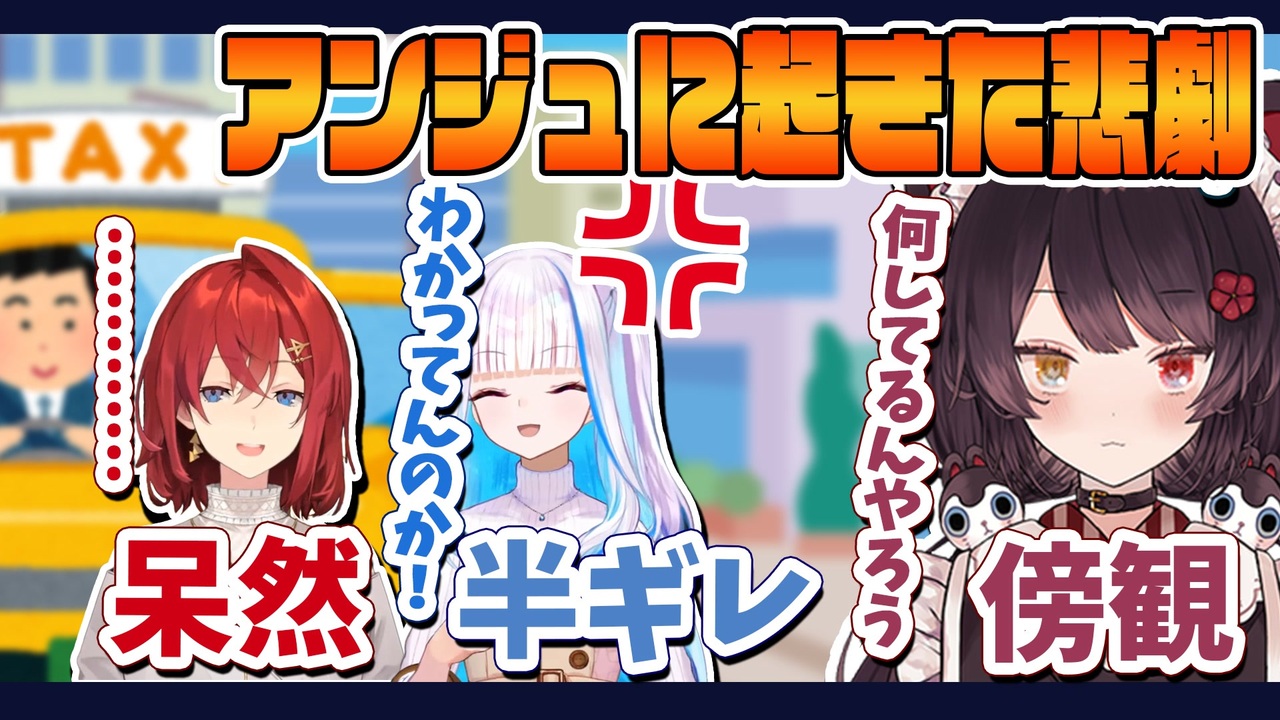 さんばか3周年記念3Dライブ当日に起こったタクシー事件をさんばかの視点でまとめてみました。<br><br>アンジュの履いてたズボンはニッカポッカ?<br><br><br>Youtube ver<br><a href="https://youtu.be/3bzS972znUk" target="_blank" rel="noopener nofollow">https://youtu.be/3bzS972znUk</a><br><br>〇元動画様はこちら↓ <br>【□雑談】3Dライブ&新衣装を振り返りつつ!いつもの雑談しようぜ【にじさんじ/アンジュ・カトリーナ】 <br><a href="https://www.youtube.com/watch?v=UGvF6Z2AS98" target="_blank" rel="noopener nofollow">https://www.youtube.com/watch?v=UGvF6Z2AS98</a><br>【雑談】いつか宇宙でみんなと握手【にじさんじ/リゼ・ヘルエスタ】 <br><a href="https://www.youtube.com/watch?v=QmfAe5ge8K0" target="_blank" rel="noopener nofollow">https://www.youtube.com/watch?v=QmfAe5ge8K0</a><br>【雑談】ライブを振り返ったり振り返らなかったりします【戌亥とこ/にじさんじ】 <a href="https://www.youtube.com/watch?v=XokefVrbBNI" target="_blank" rel="noopener nofollow">https://www.youtube.com/watch?v=XokefVrbBNI</a><br><br>---------------------------------------------------------------------------------------------------------------- <br><br>〇登場ライバーのch <br>アンジュ・カトリーナ <br><a href="https://www.youtube.com/channel/UCHVXbQzkl3rDfsXWo8xi2qw" target="_blank" rel="noopener nofollow">https://www.youtube.com/channel/UCHVXbQzkl3rDfsXWo8xi2qw</a><br>リゼ・ヘルエスタ <br><a href="https://www.youtube.com/channel/UCZ1xuCK1kNmn5RzPYIZop3w" target="_blank" rel="noopener nofollow">https://www.youtube.com/channel/UCZ1xuCK1kNmn5RzPYIZop3w</a><br>戌亥とこ <br><a href="https://www.youtube.com/channel/UCXRlIK3Cw_TJIQC5kSJJQMg" target="_blank" rel="noopener nofollow">https://www.youtube.com/channel/UCXRlIK3Cw_TJIQC5kSJJQMg</a> <br>
